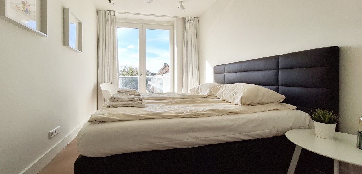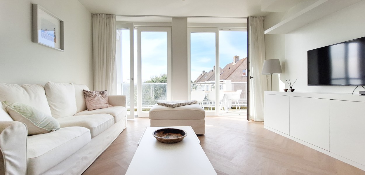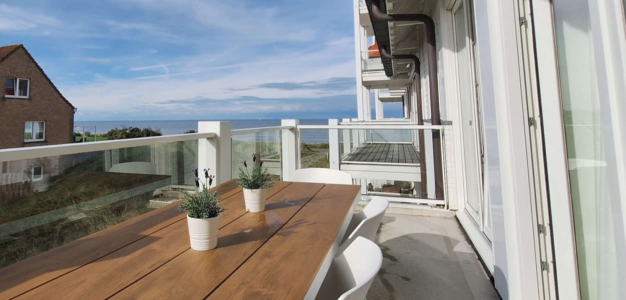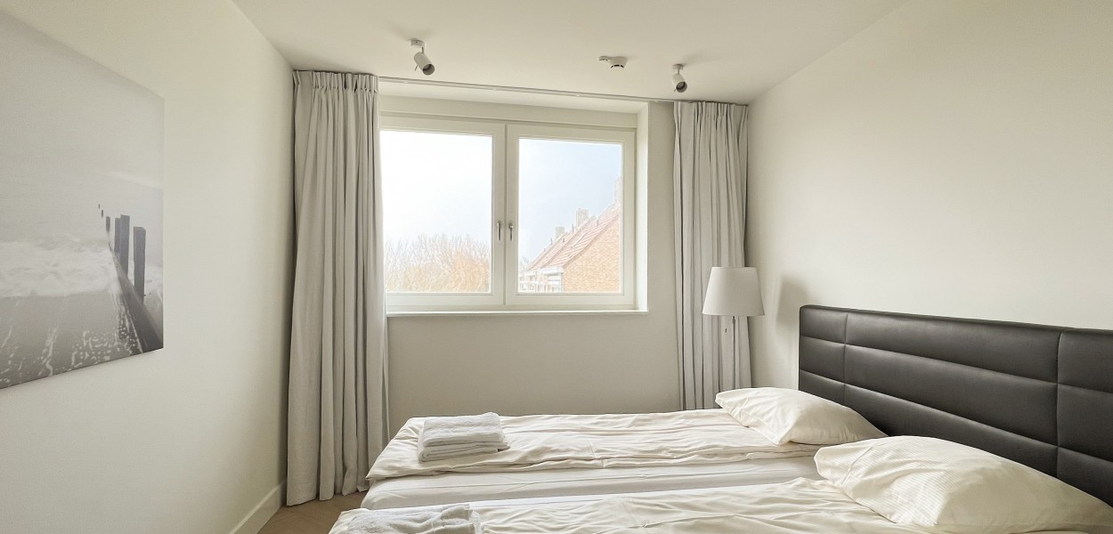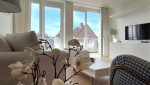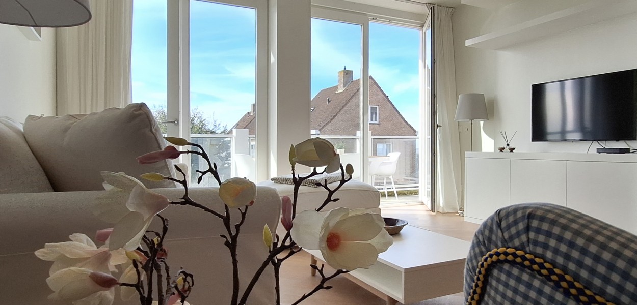 Vom sonnigen Südwestbalkon haben Sie eine spektakuläre Aussicht auf das Treiben am Strand und den lebhaften Schiffsverkehr auf der Nordsee. Durch die Glastüren betreten Sie das Wohnzimmer bzw. das Master-Schlafzimmer. Der elegante Wohnbereich ist mit einer weißen und komfortabel eingerichtet. Auf dem TV steht Ihnen ein umfassendes Senderpaket zur Verfügung und Sie können sich auf Wunsch mit Ihrem eigenen Netflix-Account einloggen.