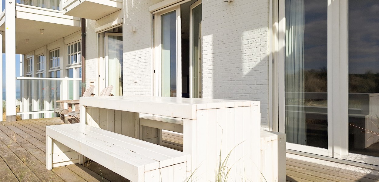 Dieses 82 m² große Apartment liegt im Erdgeschoss der neuen Residenz „Badhuis“. Im Garten haben Sie von der Terrasse am Haus sowie auch von der Terrasse in den Dünen Ausblick nach Westen über den Strand und die See. Zu jeder Zeit können Sie den Luxus des Hallenbads, der Sauna und des Wellnessbereichs in der Residenz genießen. In der Tiefgarage steht ein Parkplatz für Sie zur Verfügung, den Sie über einen Autolift erreichen können.