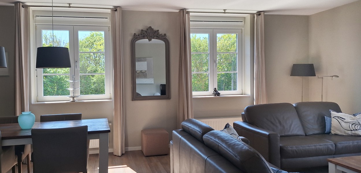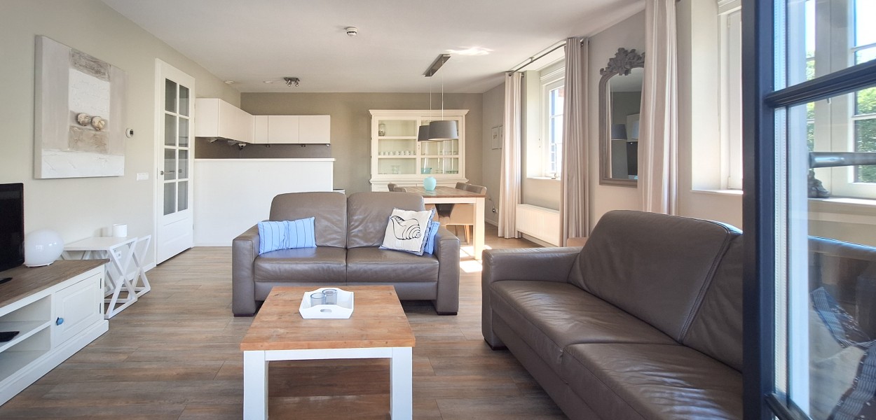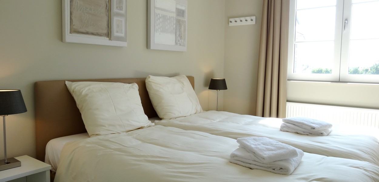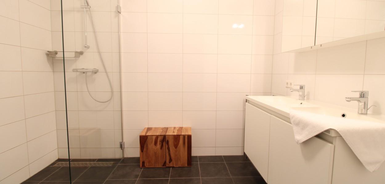 Die Schlafzimmer sind schick und bequem eingerichtet. Sie schlafen auf luxuriösen Boxspringbetten und verfügen über großzügigen Stauraum in den Schränken. Im Badezimmer gibt es eine große, bequeme begehbare Dusche und zwei Waschbecken. Eine separate Toilette gibt es im Flur, ebenso eine praktische Abstellkammer mit Waschmaschine und Trockner. Die gut ausgestattete Küche verfügt über eine Kombi-Mikrowelle, eine Kühl-Gefrier-Kombi und eine Spülmaschine und neben einer Senseo Maschine ist auch einen Filterkaffee Maschine anwesend.