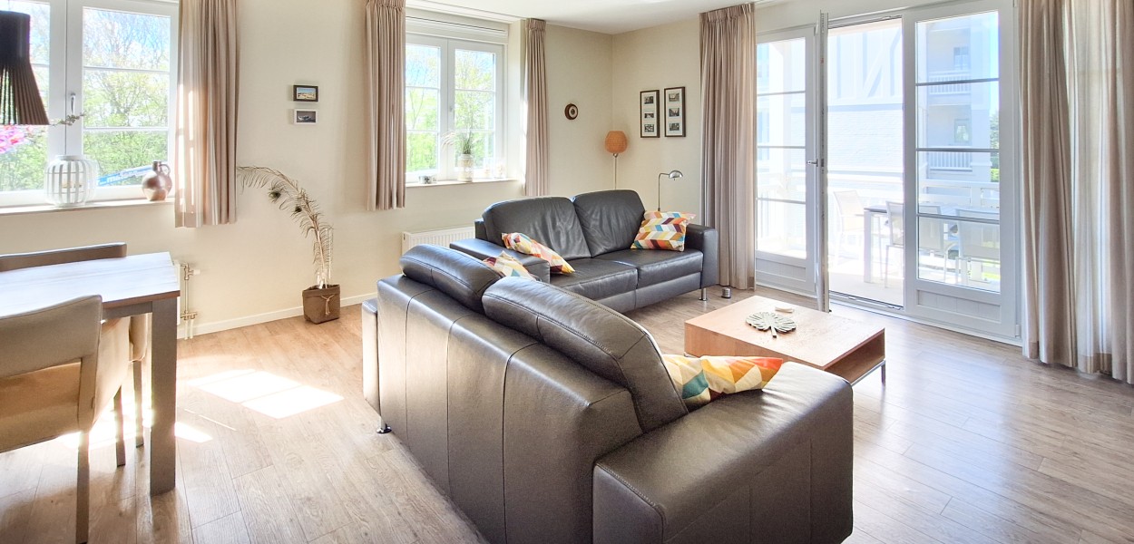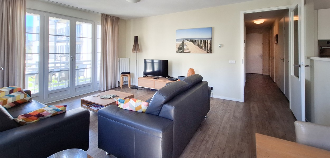Ein bequemes Apartment von 78 m² im ersten Stockwerk in “Duinhof IV”. Im Wohnzimmer führen Glastüren auf einen geräumigen Südwestbalkon.