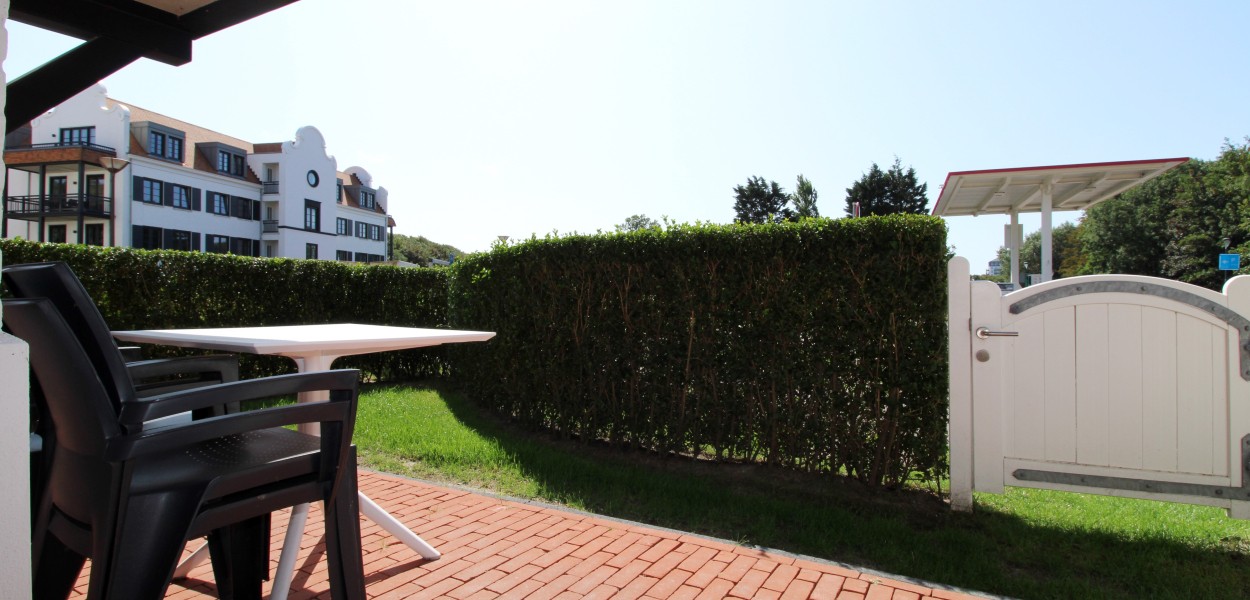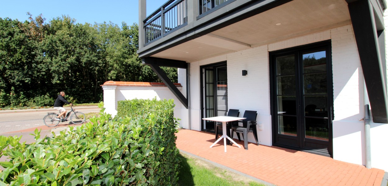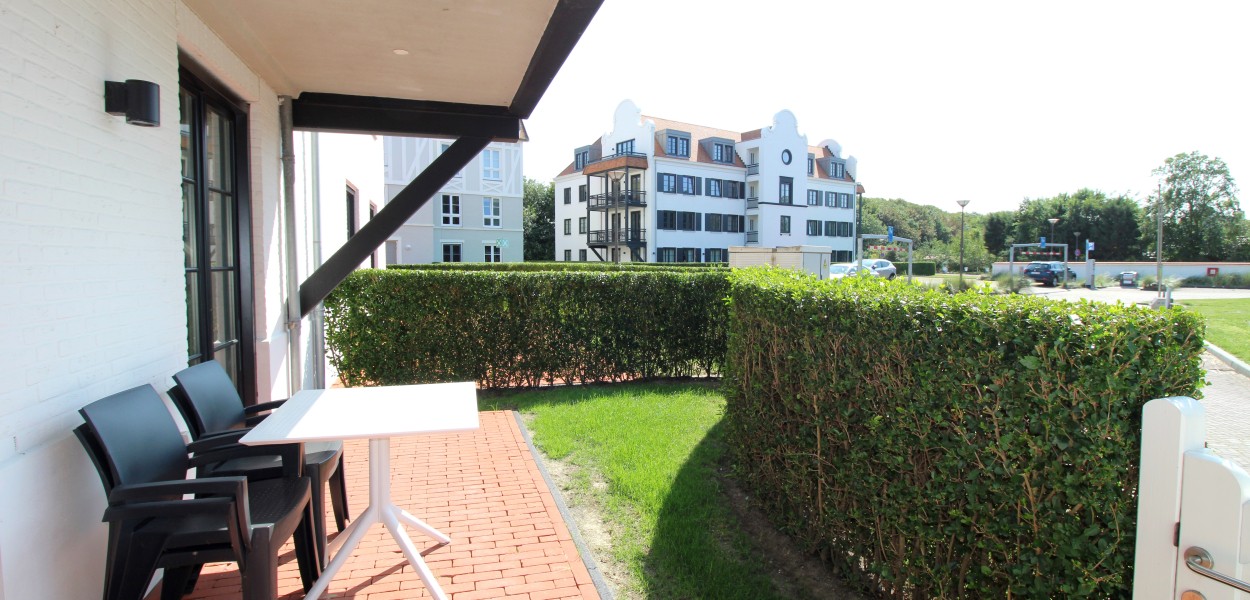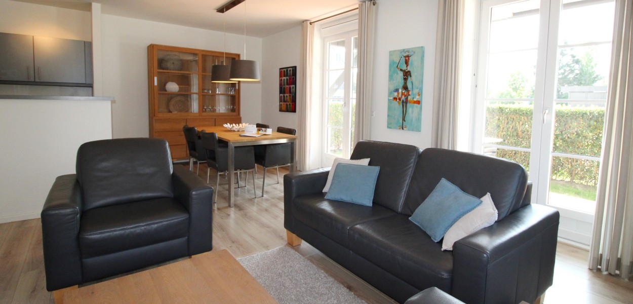 Ein bequem eingerichtetes, ebenerdiges Apartment von 74 m² mit einem sonnigen Gärtchen und Terrasse nach Westen. Diese Wohnung liegt direkt am geselligen Boulevard. Durch die hohe Hecke rund um den Garten genießen Sie auch Ihre Privatsphäre. Ihr Hund ist auch herzlich willkommen.