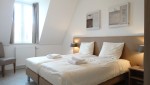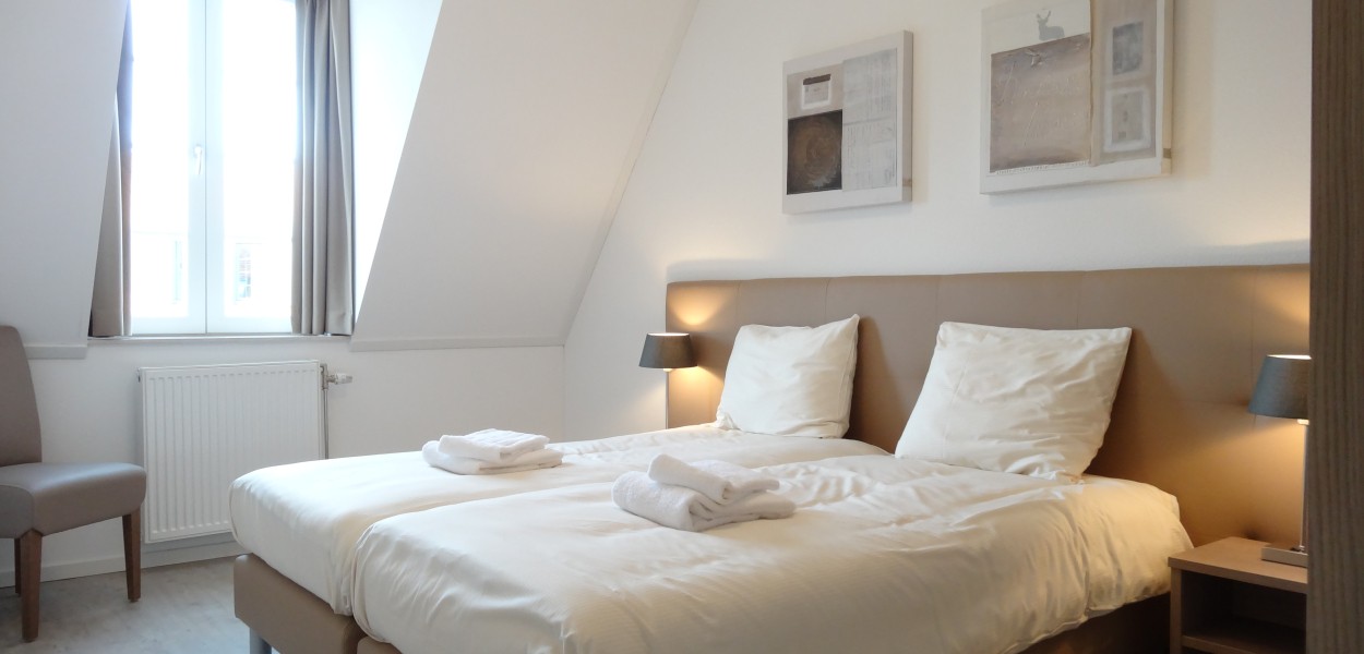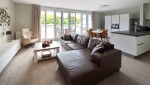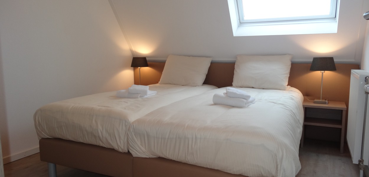 Die beiden Schlafzimmer sind durchdacht und elegant mit Boxspringbetten eingerichtet, Das Hauptschlafzimmer hat auch einen Schreibtisch. Das geräumige Badezimmer ist mit einer begehbaren Dusche, zwei Waschbecken und WC ausgestattet. Im Flur befindet sich eine separate Toilette. Die offene Küche hat eine Kombi-Mikrowelle, eine Kühl-Gefrier-Kombination, ein Senseo Maschine und eine Spülmaschine. In der praktischen Abstellkammer stehen die Waschmaschine und andere Haushaltsgeräte.