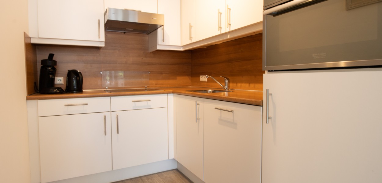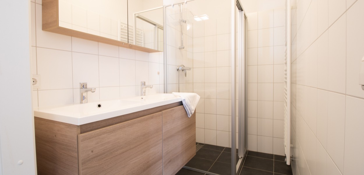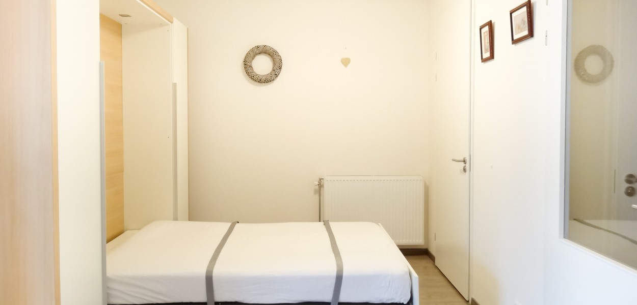 Der Wohnbereich ist geräumig und verfügt über eine gemütliche Sitzecke mit Fernseher mit Chromecast, einem großen Esstisch und eine offene Küche. Es gibt ein Doppelauszugs die für potenzielle Besucher vorhanden ist, säuberlich in einem Schrank versteckt. Das Schlafzimmer ist elegant eingerichtet und komplett mit einem luxuriösen Boxspring-Kombination und einem geräumigen Kleiderschrank. Das Badezimmer hat eine schöne Dusche und ein Waschbecken und auch ein Haartrockner steht zur Verfügung. In der Halle gibt es eine Toilette und ein praktischer Abstellraum mit Waschmaschine. Die Küche ist mit einem bequemen Mikrowelle, Kühlschrank mit Gefrierfach,