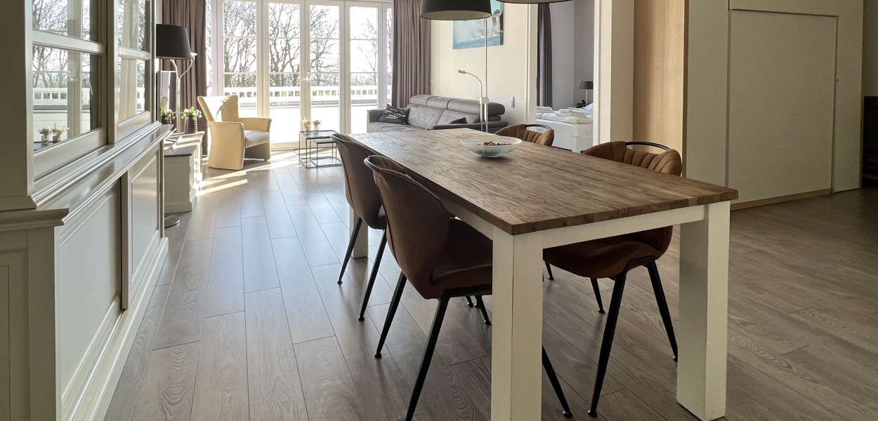 Diese komfortable Wohnung von 64m² befindet sich im 2. Stock und verfügt über eine ruhige Süd-Balkon, der einen Spazierdeich überblickt.Für etwas Schatten an den heißesten Tagen, ist Sonnenschutz angebracht.