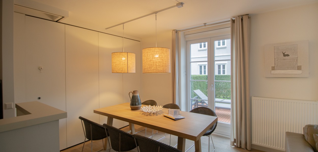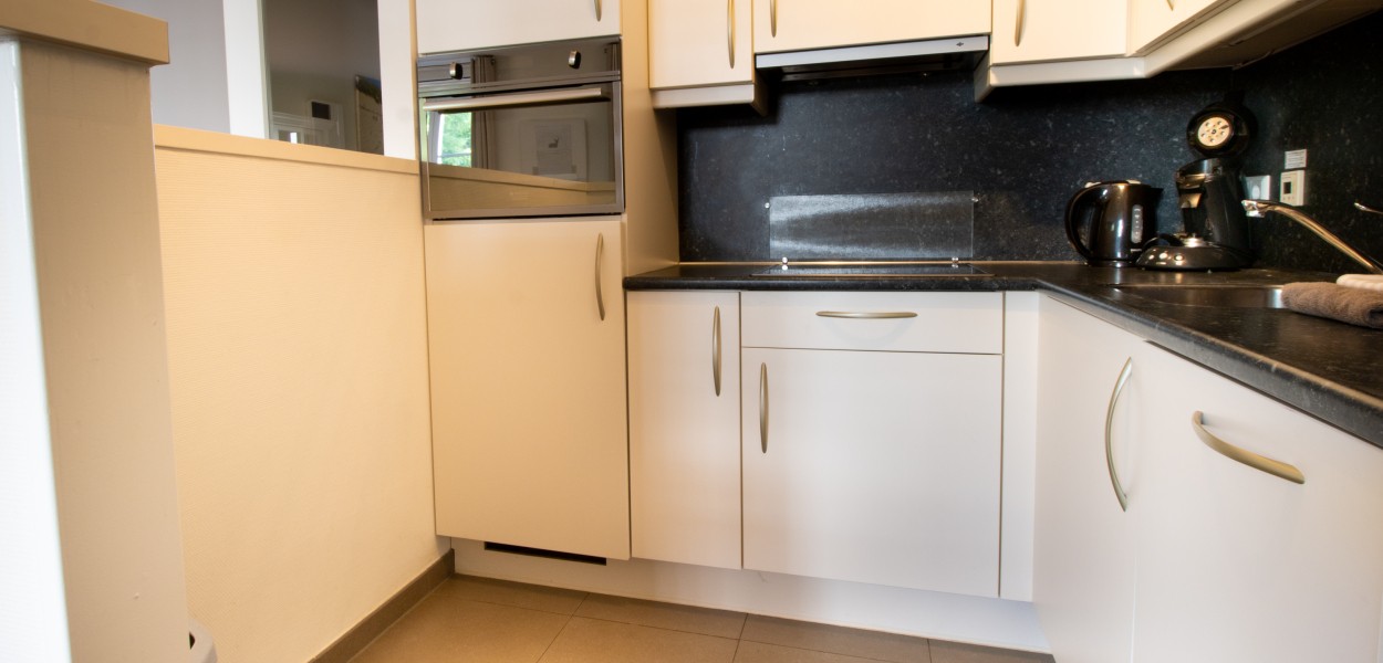 Die Küche verfügt über eine Kombi-Mikrowelle, Kühl-Gefrier-Kombi, Geschirrspüler, Senseo maschine und Nespresso Gerät. Die gut ausgestattete, offene Küche und die Glastüren zum sonnigen Garten verleihen dem Wohnzimmer besonderen Wohnkomfort. Sehr tolle Wohnung für ein Strandurlaub oder Kurzurlaub. Ein weiteres Extra zu dieser Wohnung ist, dass du diese Wohnung mit der Wohnung I - 03, die sich nebenan befindet, zusammenlegen kannst. Dies geschieht über ein zu öffnendes Schiebesystem.