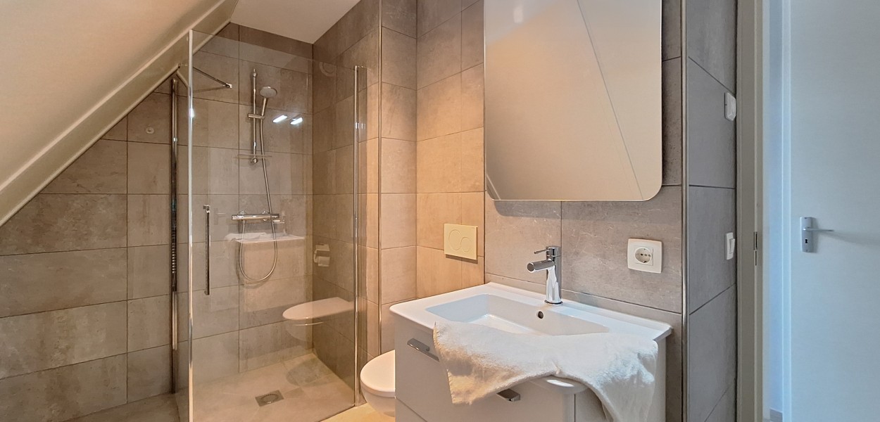 In der ersten Etage gibt es einen breiten Flur mit drei Schlafzimmern, wovon zwei einen Zugang zu einem eigenen Balkon haben. Alle Schlafzimmer haben komfortable Boxspringkombinationen und ausreichend Stauraum. Das größere Badezimmer verfügt über eine begehbare Dusche und ein Doppelwaschbecken, während das andere Badezimmer mit einer begehbaren Dusche und einem Einzelwaschbecken ausgestattet ist. Eine zweite Toilette befindet sich auf dem Flur neben der Treppe. Auf der zweiten Etage ist das vierte Schlafzimmer mit eigener Dusche und WC.