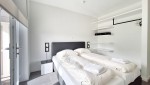 Der Wohnbereich ist mit einer komfortablen Couch und einem TV-Gerät. Der Essbereich bietet mehr als ausreichend Platz, um gemütlich zu tafeln, und schließt sich nahtlos an die moderne, komplett ausgestattete Küche mit verlängerter Arbeitsplatte und zusätzlichem Stauraum an. Eine Nespresso-Maschine, Keramikkochfeld,Toasted Sandwich Maker, Kombi-Mikrowelle, Kühlschrank, Tiefkühler und Geschirrspüler gehören selbstverständlich zur Kücheneinrichtung. Beide Schlafzimmer sind elegant mit komfortablen Boxspring-Betten und geräumigen Schränken eingerichtet. Die beiden Badezimmer sind unterschiedlich ausgestattet. Ein Badezimmer schließt direkt an das Schlafzimmer an und verfügt über eine luxuriöse Regendusche, ein Doppelwaschbecken und eine Toilette. Das zweite Badezimmer ist vom Flur aus zugänglich und hat eine komfortable Dusche und ein Waschbecken. Darunter befindet sich hier ein praktisches Wasch-Trocken-Kombigerät. Ein Haartrockner ist vorhanden. Eine zusätzliche Toilette und ein Abstellraum befinden sich im Eingangsbereich.