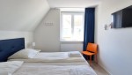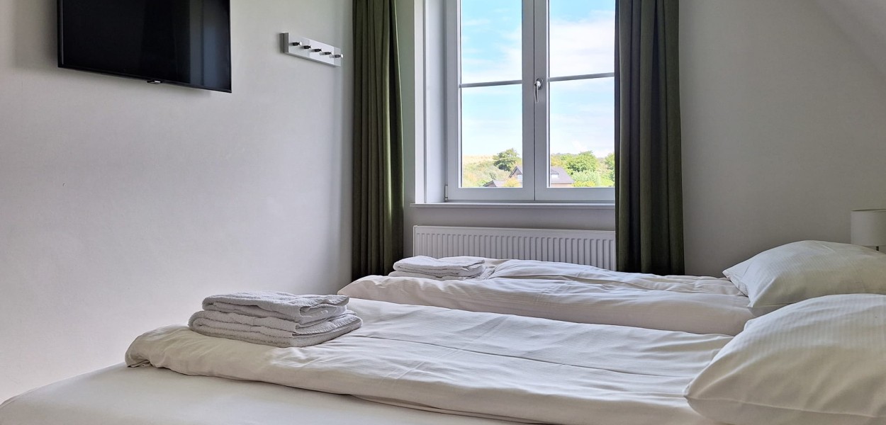 Diese luxuriöse Doppelvilla bietet Platz für sechs Personen und liegt nur fünf Gehminuten vom Strand entfernt. Der Garten mit Terrasse liegt nach Südosten, so können Sie dort wunderbar die Morgen- und Mittagssonne genießen. Unterm Dach ist ein Hobbyraum mit Tischfußball und anderen Spielen eingerichtet, wo sich ältere Kinder prima unterhalten können!