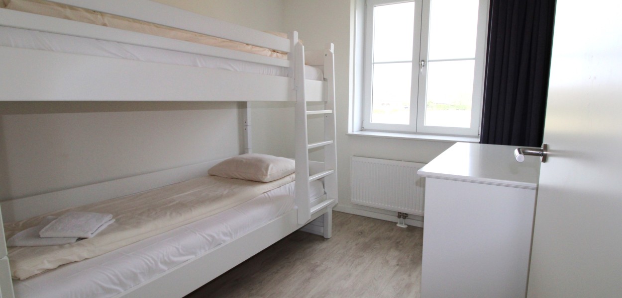 Im ersten Stock befinden sich drei Schlafzimmer, ein Badezimmer und eine Abstellkammer. In zwei der Schlafzimmer schlafen Sie in luxuriösen Boxspringkombinationen und diese 2 Schlafzimmer haben auch einen Fernseher. Das dritte Schlafzimmer ist mit einem stabilen Hochbett ausgestattet.