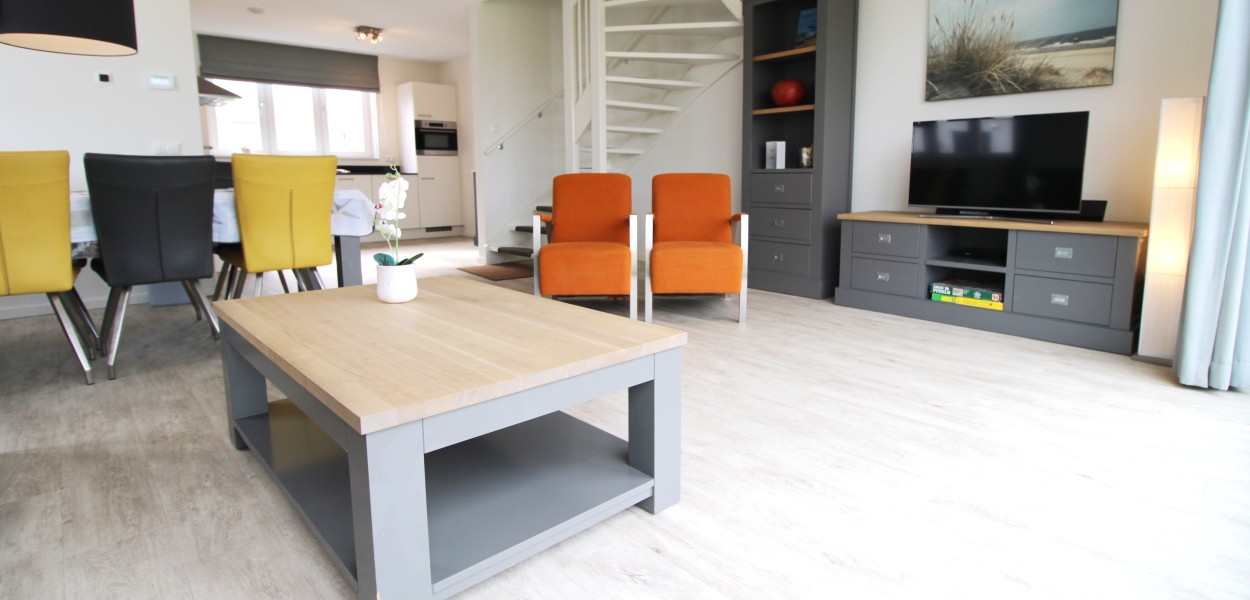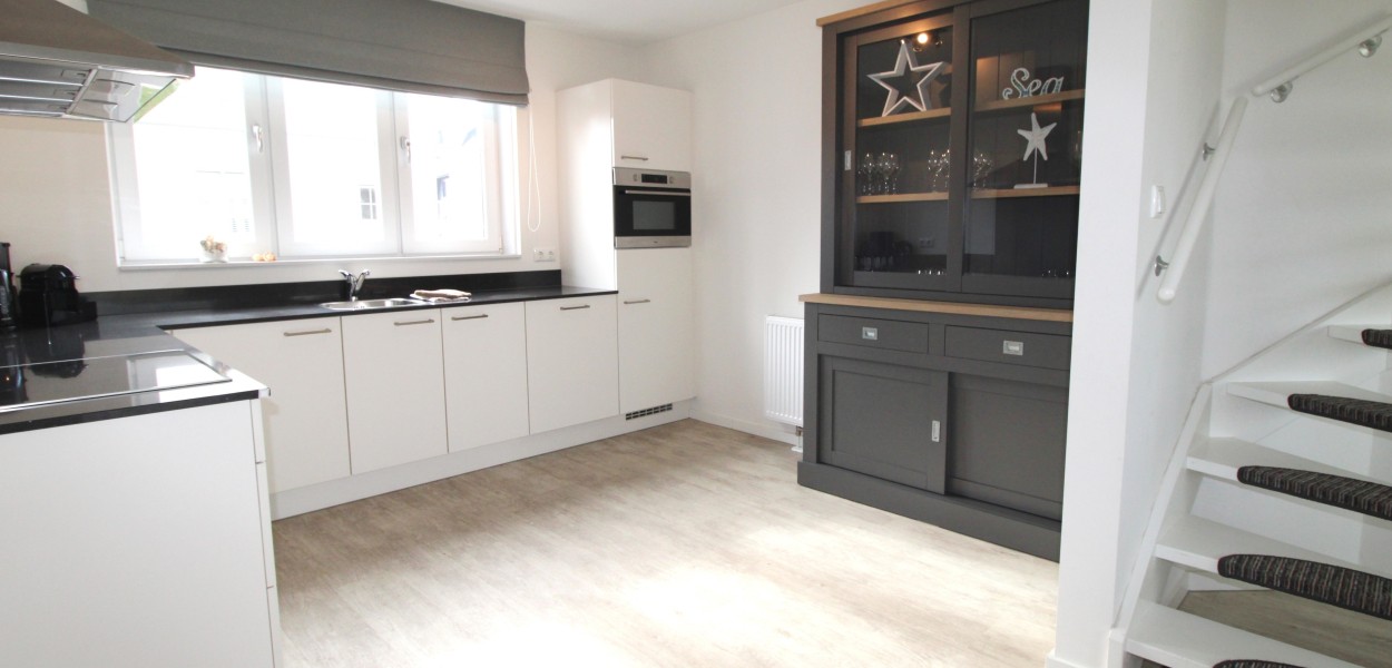 Im Erdgeschoss gibt es ein komfortables Wohnzimmer sowie eine offene, komplett ausgestattete Küche. Die Küche ist unter anderem mit einer Nespresso-Maschine, Kombi-Mikrowelle, Kühlschrank und einem Geschirrspüler ausgestattet. Sie kochen auf Keramik und verfügen über ein äußerst komplettes Inventarpaket.
