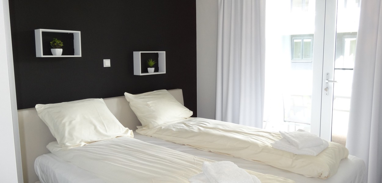 Ein sonniges, stilvolles Apartment mit 86 m² im Erdgeschoss mit zwei Schlafzimmern. Der südwestlich gelegene Garten garantiert viel Spaß und Sonne. Dieses geräumige Apartment hat zwei Badezimmer, wovon eines über eine Kombi-Sauna (Finnische Sauna und Infrarot-Sauna) verfügt.