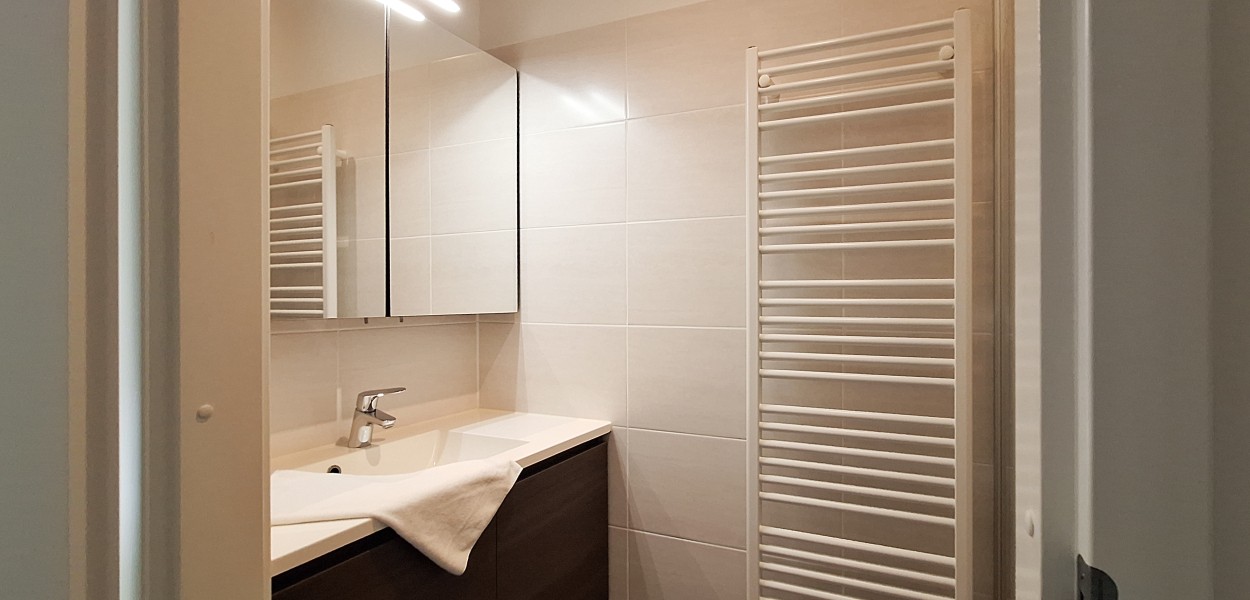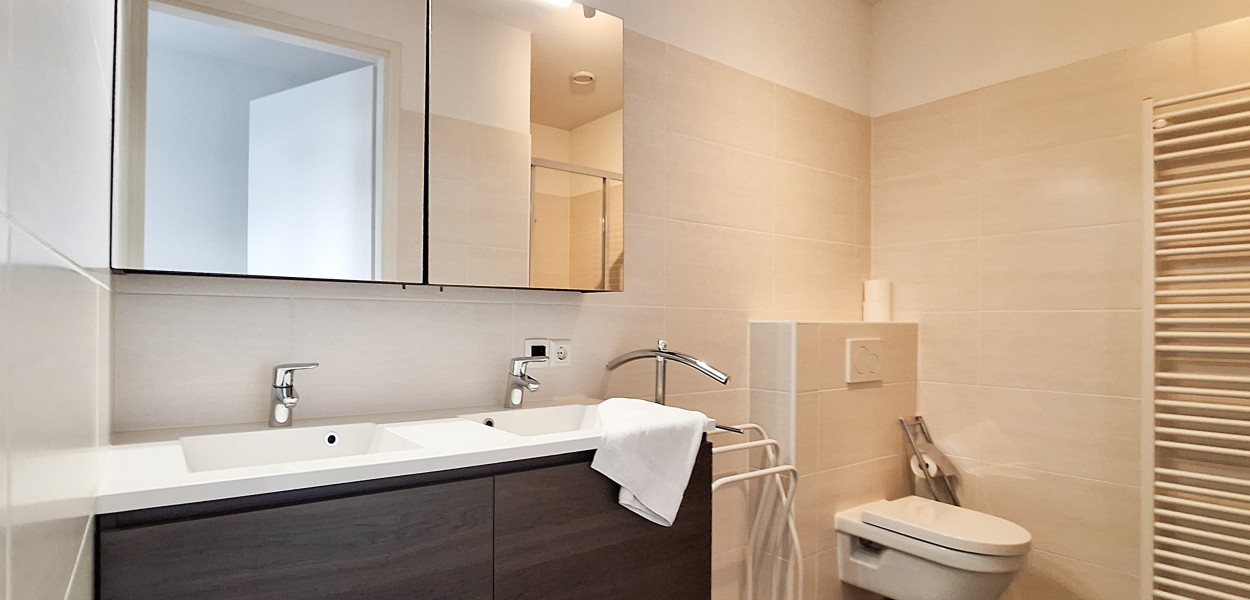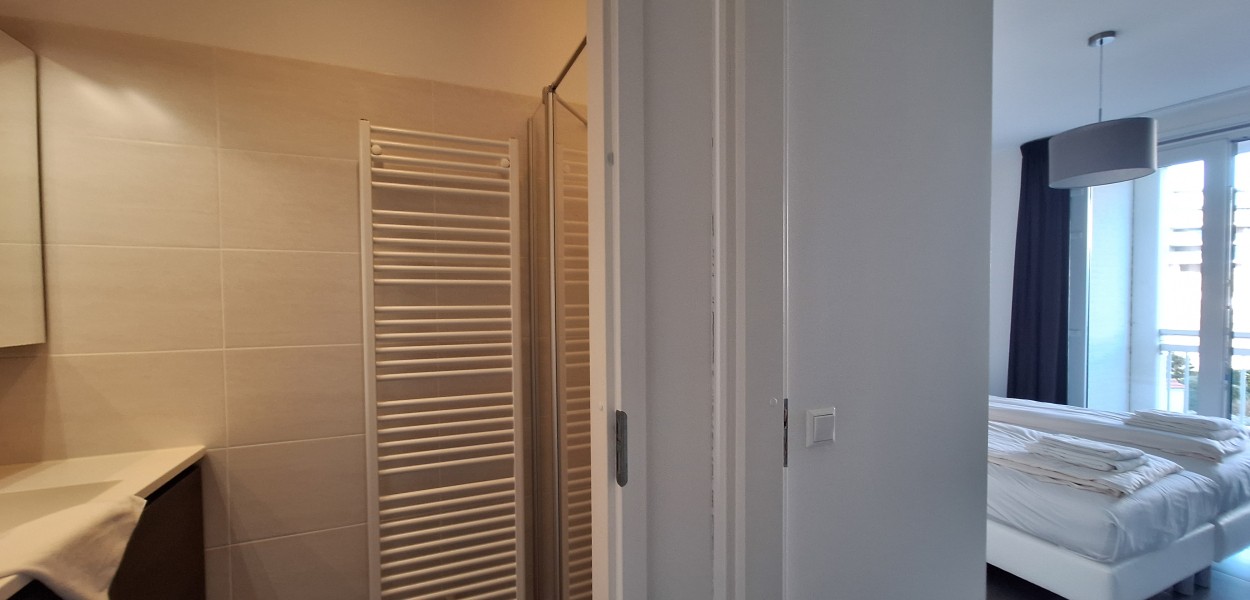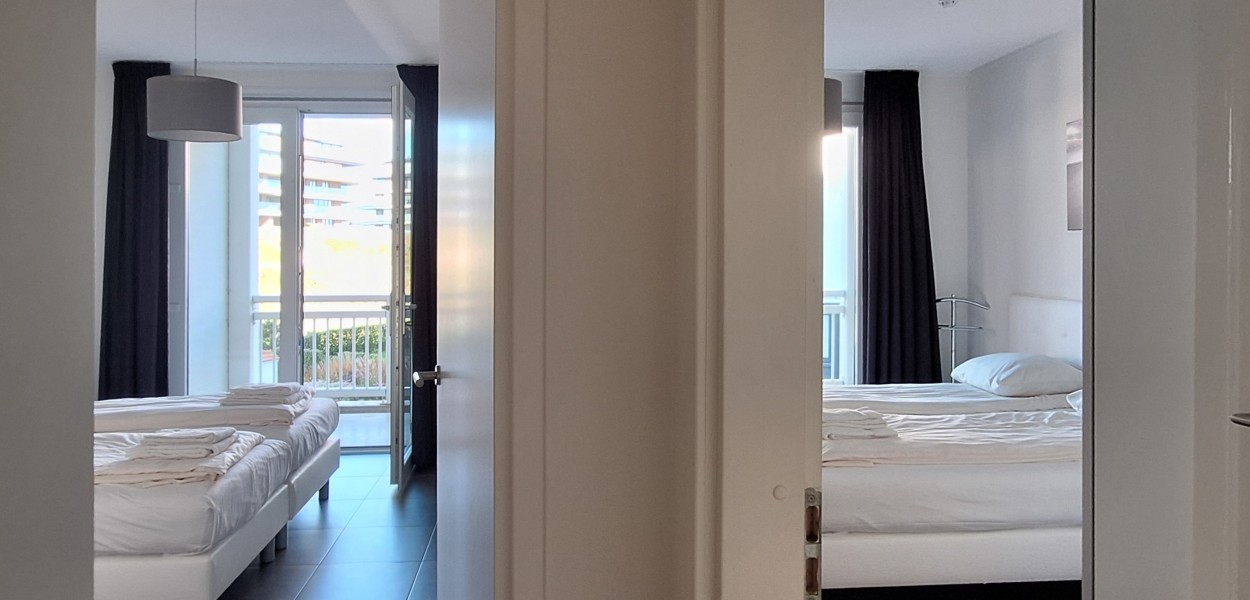 Dieses Apartment für 4 Personen hat 2 geräumige Schlafzimmer, beide mit luxuriösen Boxspringbetten und Digital-TV. Im ersten Badezimmer, das an das Elternschlafzimmer angeschlossen ist, gibt es eine 1,20 m breite XL-Dusche, eine Toilette und ein Doppelwaschbecken. Ein Haartrockner ist vorhanden.