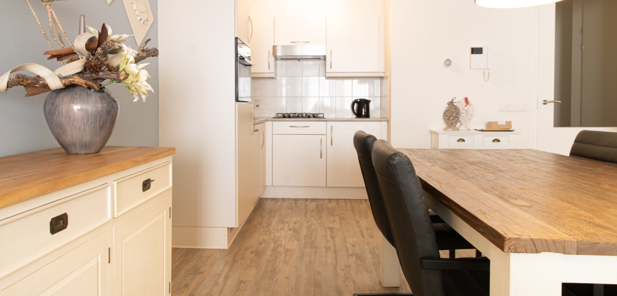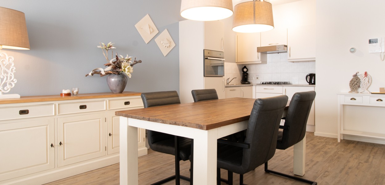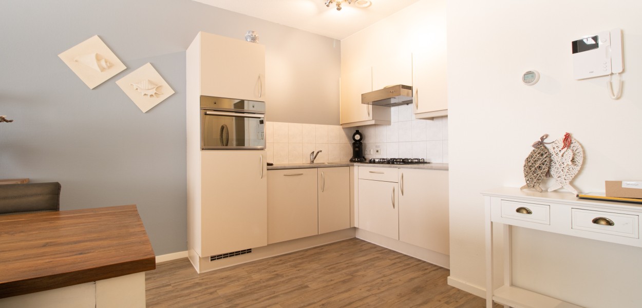 Die offene Küche verfügt über ein Senseo-Maschine, eine Kombi-Mikrowelle, eine Kühl-Gefrier-Kombi und eine Geschirrspülmaschine. Die Farbwahl und die Einrichtung der Wohnung sorgen für fröhliche, spielerische Effekte. Kurz gesagt: In diesem Apartment finden Sie alles für einen unvergesslichen Ferienaufenthalt.