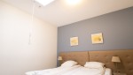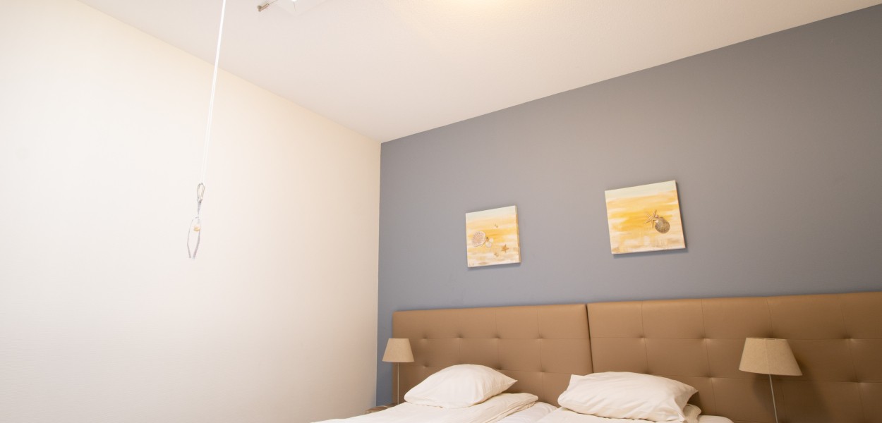 Beide Schlafzimmer sind elegant und gemütlich eingerichtet. Sie schlafen auf luxuriösen Boxspringbetten. Das zweite Schlafzimmer hat eine Lichtkuppel in der Decke, die tagsüber für Tageslicht sorgt und Ihnen nachts den Blick auf den Sternenhimmel frei gibt. Im Badezimmer gibt es eine begehbare Dusche und ein Waschbecken. Die erhöhte Toilette befindet sich im Eingangsbereich, ebenso die praktische Abstellkammer mit Waschmaschine und Trockner.