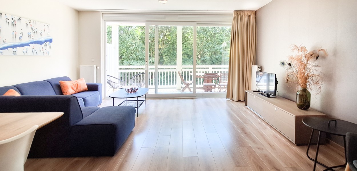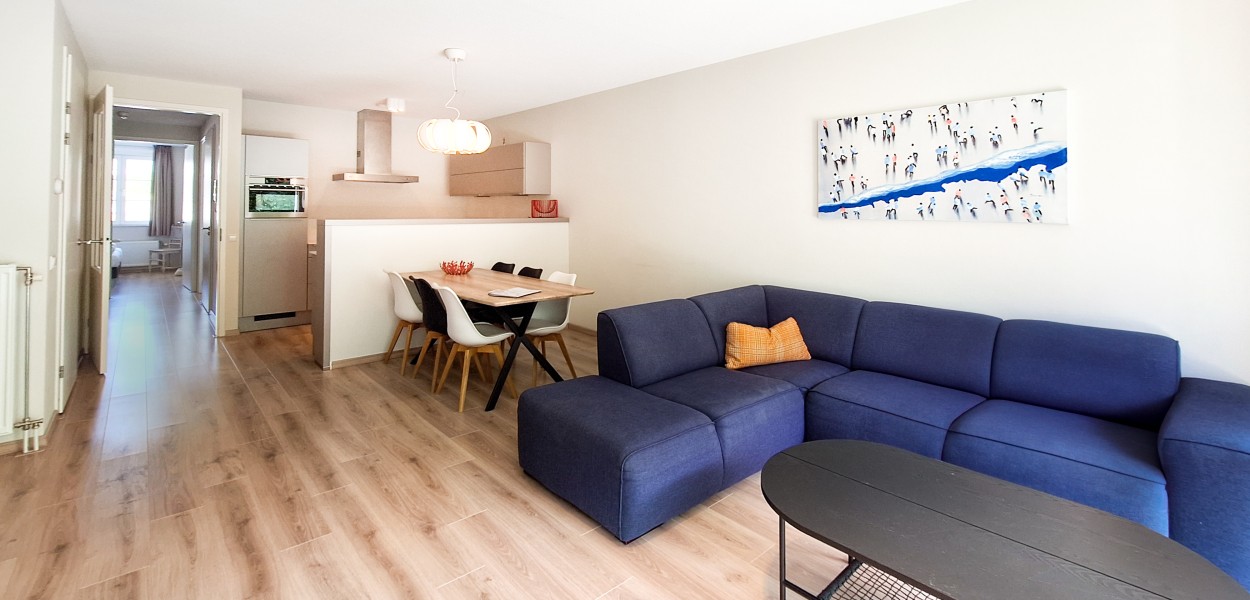 Eine helle und geräumige Wohnung von 84m² in der ersten Etage. Die Schiebetür öffnet sich auf der Südseite einen großen Balkon mit herrlichem Blick auf die Umgebung. Das Wohnzimmer ist hell und komfortabel. Sie finden in dieser Wohnung außer einem geschmackvoll eingerichtete Schlafzimmer, ein geräumiges Kinderzimmer, ein Badezimmer und eine Luxus-Küche. . Wenn Sie dieses Apartment zwischen Mitte Mai und Mitte September buchen, steht Ihnen die zugehörige Strandkabine ebenfalls zur Verfügung.