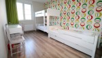 Das Schlafzimmer ist elegant und gut ausgestattet, Sie schlafen in einem luxuriösen Boxspring Kombination. In das zweite schlafzimmer gibt es ein Etagenbett und ein Einzelbett, ideal mit drei Kindern. Der inspirierte Badezimmer verfügt über eine Badewanne mit Dusche und Doppelwaschbecken. Ein separates WC befindet sich in der Halle, gegenüber dem Bad. In das Abstellraum ist eine Waschmaschine zur Verfügung.