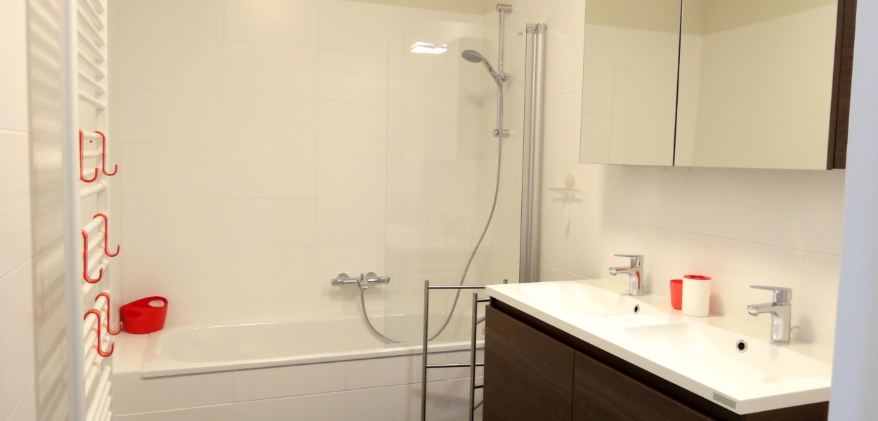 Die offene Küche ist mit ein Senseo-Maschine, Mikrowelle, Kühlschrank mit Gefrierfach, Geschirrspüler und umfangreiches Inventar ausgestattet. Die Kombination aus dem hellen, großzügig Wohnzimmer, schöne offene Küche und Schiebetüren zum Balkon gibt diesem feinen Familie Wohnung noch mehr Wohnkomfort.
