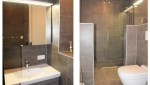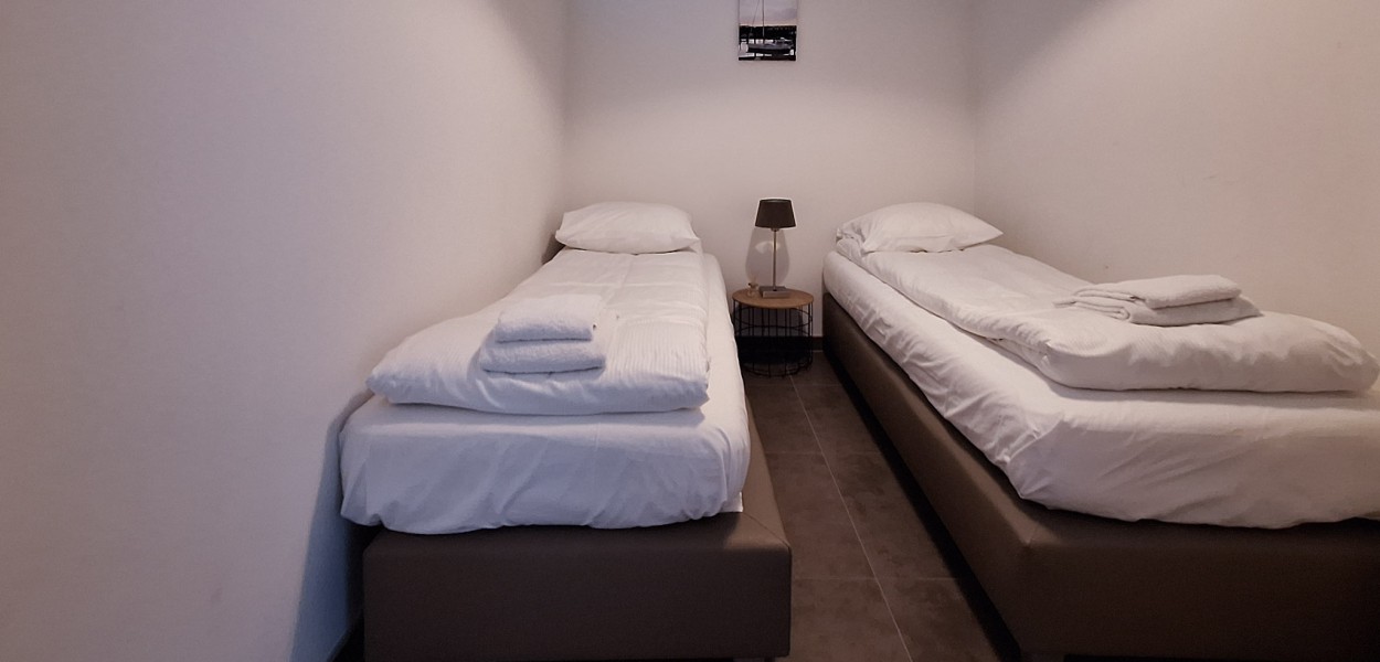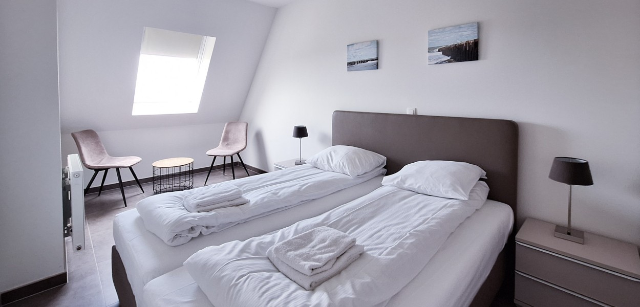 Das Schlafzimmer ist geräumig mit Boxspringbetten von 2,10 m Länge. Im Kinderzimmer befinden sich 2 Boxspring-Einzelbetten (auf anfrage). Das Badezimmer ist sehr stilvoll eingerichtet und verfügt über eine geräumige ebenerdige Dusche, Waschbecken und eine Toilette. Ein Wasch- Trockenkombination steht Ihnen im Abstellraum zur Verfügung.