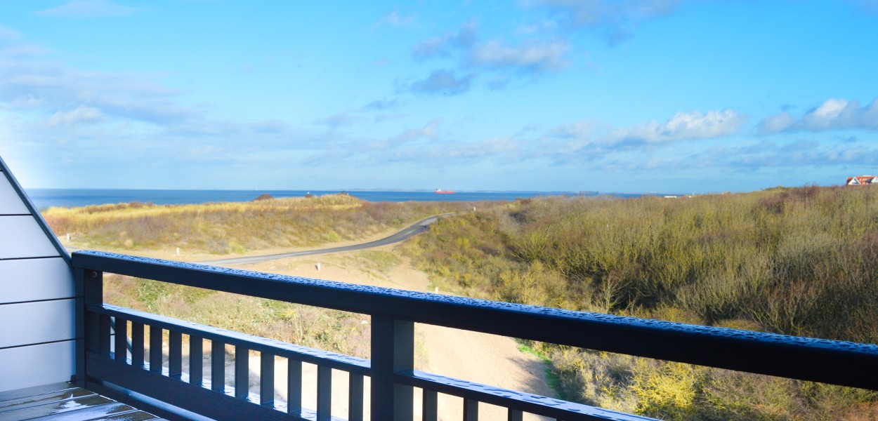 - Balkon mit Panoramablick über die Dünen und Meer