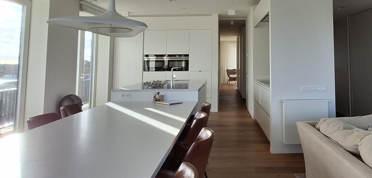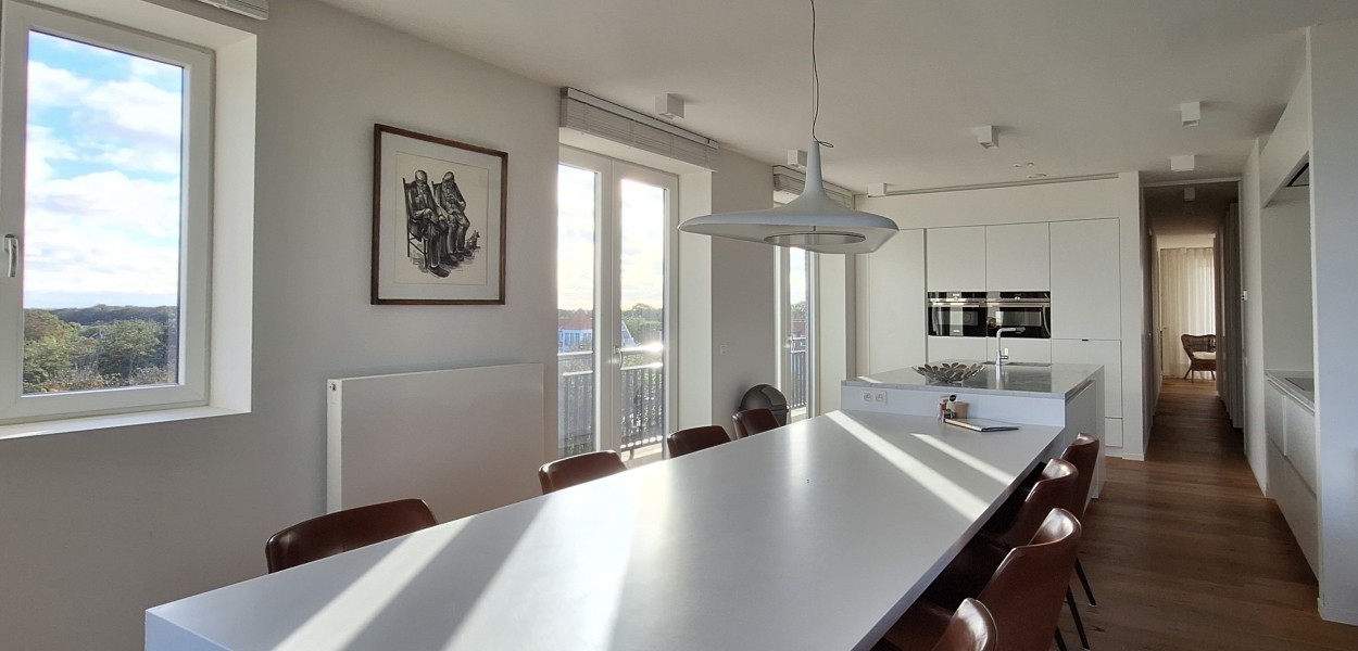 Diese geräumige und helle Wohnung von 131m² in der Strandresidentie ist sehr stilvoll eingerichtet und verfügt über 3 Schlafzimmer, 2 Badezimmer und 2 Parkplätze. Von der vierten Etage haben Sie einen spektakulären Blick auf die umliegenden Dünen und die Nordsee, die immer faszinieren.
