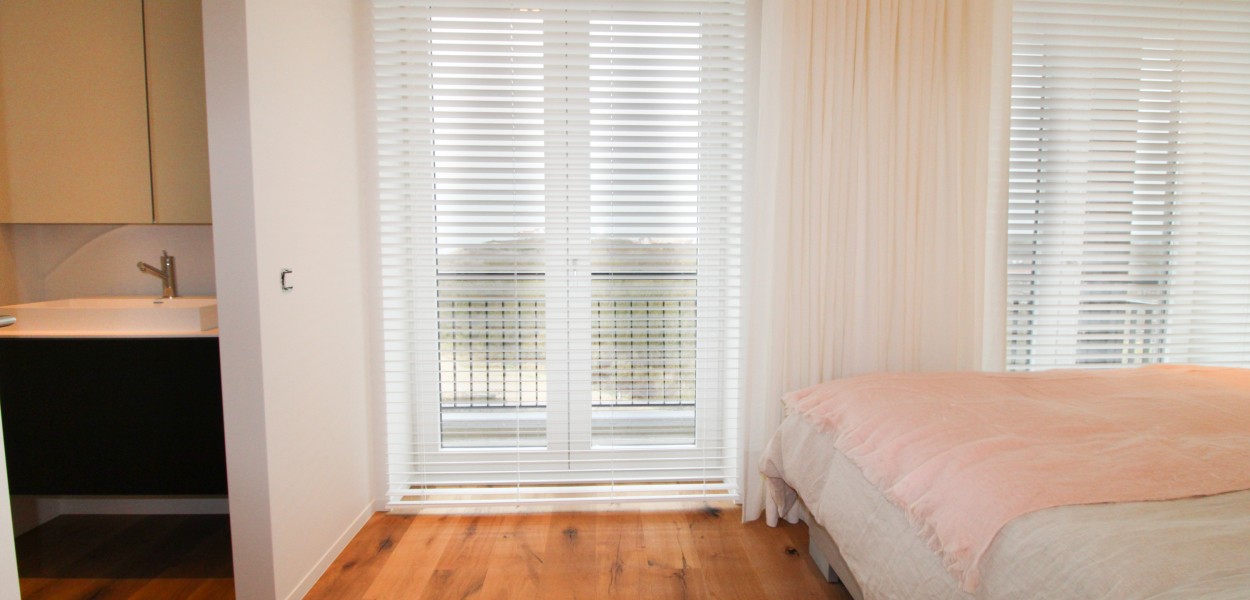 Das geräumige Wohnzimmer hat Fenster auf zwei Seiten, wodurch das Zimmer besonders hell wird. Die Aussicht vom Wohnbereich ist sowohl nach Norden als auch nach Osten hin großartig: mitten in den Dünen und mit direktem Meerblick. Vom bequemen Sitzbereich aus können Sie die Schiffe sehen, die die Westerschelde segeln. Es gibt auch einen Fernseher mit extra ausländischen Kanälen, besonders interessant für unsere deutschen Gäste, und einen großen Esstisch, der ausreichend Platz für ein angenehmes Essen oder Spiel bietet. Die luxuriöse offene Küche bietet zusätzlichen Stauraum und ist mit einem Induktionskochfeld, einer Kombi-Mikrowelle und einem Dampfbackofen ausgestattet. Eine Kühl- / Gefrierkombination, ein Geschirrspüler und eine Nespresso-Maschine stehen Ihnen ebenfalls zur Verfügung.