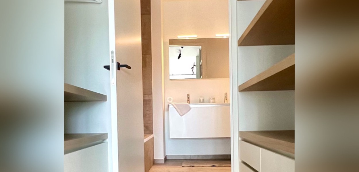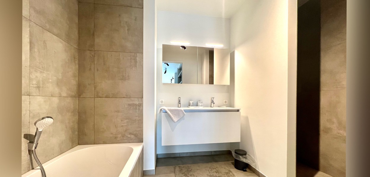 Beide Schlafzimmer sind sehr elegant mit luxuriösen Boxspring-Kombinationen ausgestattet, die einen erholsamen Schlaf garantieren. Die geräumigen Einbauschränke bieten ausreichend Stauraum. Von beiden Schlafzimmern haben Sie Zugang zum Südbalkon, auf dem Sie schon frühmorgens die Sonne genießen können. Das Hauptschlafzimmer verfügt über ein luxuriöses Ankleidezimmer und das Badezimmer ist en suite. Beide Badezimmer verfügen über eine ebenerdige Dusche und ein Doppelwaschbecken. Eine individuelle Toilette befinden sich auf dem Flur, ebenso wie ein Abstellraum, in dem unter anderem eine Waschmaschine und ein Trockner untergebracht sind.