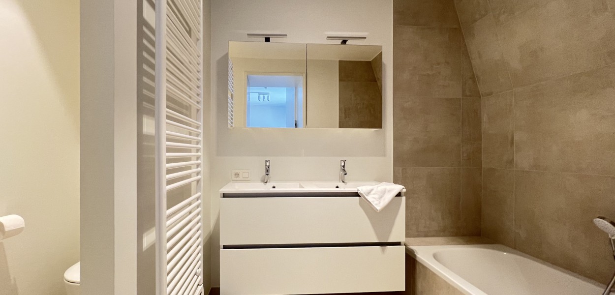 Alle drei Schlafzimmer sind elegant mit luxuriösen Boxspring-Kombinationen ausgestattet, die einen erholsamen Schlaf garantieren. Die Wohnung hat viel Stauraum. Zwei Badezimmer sind en suite zu den Schlafzimmern und ein extra Badezimmer auf dem Flur, 2 davon verfügen über eine ebenerdige Dusche und ein Waschbecken. Das größte Badezimmer hat eine schöne Badewanne und eine zusätzliche Toilette, eine separate Toilette befindet sich auf dem Flur. Im Abstellraum stehen Ihnen unter anderem eine Waschmaschine und ein Trockner zur Verfügung.