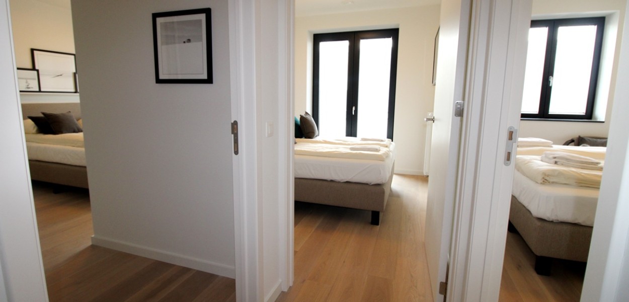 Der große Esstisch verbindet den Raum mit der luxuriösen offenen Küche mit Kochinsel, die über eine Nespresso-Maschine, ein Induktionskochfeld, eine Kombi-Mikrowelle, eine Kühl-Gefrier-Kombination und einen Geschirrspüler verfügt. In allen Schlafzimmern schlafen Sie auf luxuriösen Boxspringkombinationen, zudem ist in jedem Zimmer ausreichend Schrankraum vorhanden. Das Badezimmer im Hauptschlafzimmer hat eine Badewanne, eine Dusche, ein Doppelwaschbecken und eine Toilette. Das zweite Badezimmer ist mit einer begehbaren Dusche und einem Waschbecken ausgestattet. In der Diele befindet sich ein separates Gäste-WC sowie ein praktischer Abstellraum, der ua eine Waschmaschine enthält.