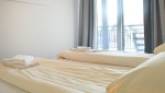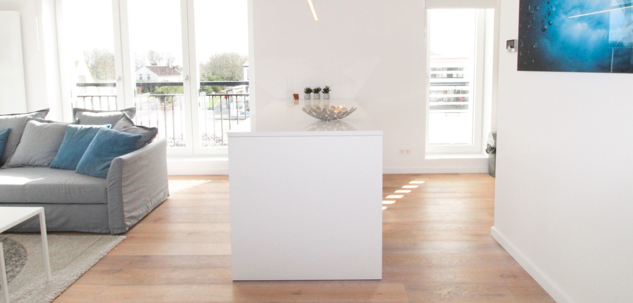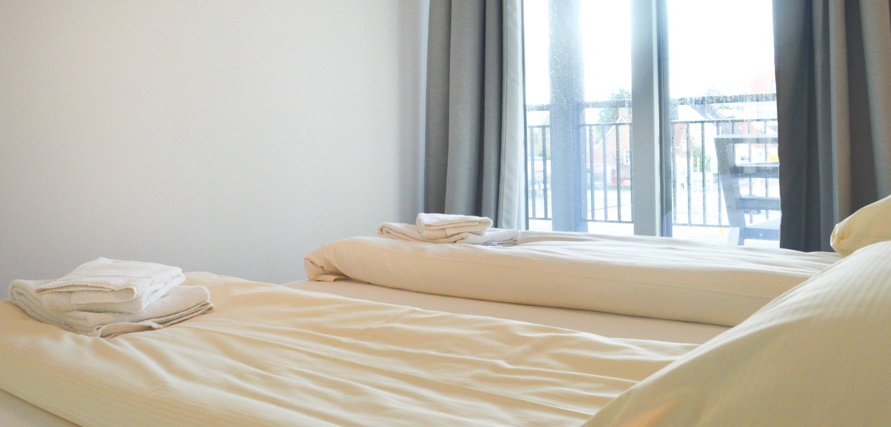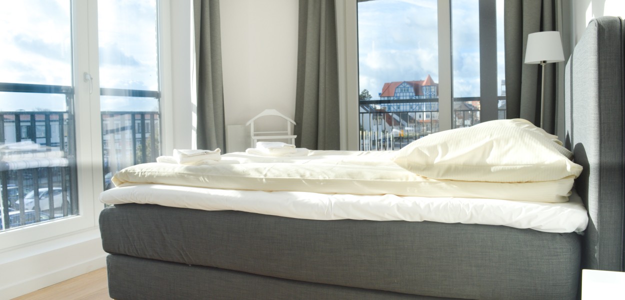 Beide Schlafzimmer sind elegant mit luxuriösen Boxspring-Kombinationen eingerichtet und bieten ausreichend Stauraum. Das Hauptschlafzimmer verfügt über 2 separate Matratzen mit einer 2-Personen-Matratze, während im zweiten Schlafzimmer 2 separate Matratzen vorhanden sind. Das Hauptschlafzimmer das auch über einen Fernseher verfügt ist zur südwestlichen Ecke ausgerichtet, so dass sowohl im Süden als auch im Westen Fenster vorhanden sind und das Hauptschlafzimmer wunderbar hell ist. Vom zweiten Schlafzimmer aus betreten Sie den Westbalkon, auf dem Sie die Abendsonne genießen können. Das Badezimmer hat Tageslicht und verfügt über eine ebenerdige Dusche, ein Doppelwaschbecken und eine Toilette. Eine individuelle Toilette befindet sich im Flur. Im Abstellraum steht Ihnen unter anderem ein Waschtrockner zur Verfügung.
