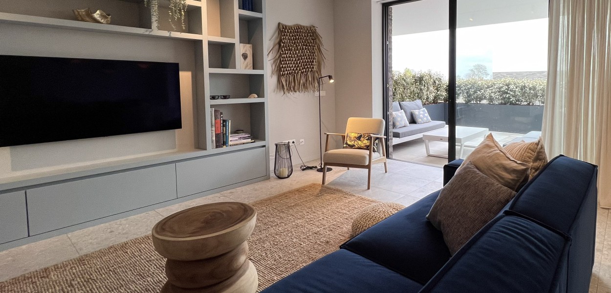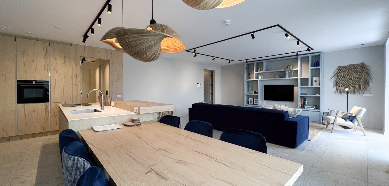 Der Wohnbereich besteht aus einem gemütlichen Wohnzimmer, einer schönen offenen Küche und einem gemütlichen Essbereich. Das Wohnzimmer verfügt über eine Sitzecke mit Fernseher, auf dem ein umfangreiches Senderpaket angesehen werden kann. Da sich die Fenster auf der Wohnzimmerseite vollständig öffnen lassen, sind innen und außen miteinander verbunden. Im Inneren finden Sie eine luxuriöse und praktische offene Küche mit Kochinsel und angrenzendem Essbereich. Die Küche ist mit einer Quooker-Kombihahn, Nespresso-Maschine, Aeroccino milchaufschäumer, einer Kombination aus Backofen/Mikrowelle, einem Kühlschrank mit Gefrierfach und einem Geschirrspüler ausgestattet. Sie kochen auf Induktion und es steht Ihnen ein äußerst komplettes und geschmackvolles Inventarpaket zur Verfügung.