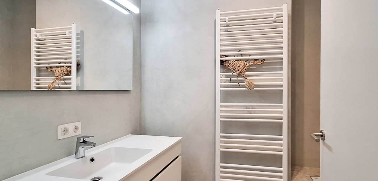 An der Vorderseite befinden sich drei komfortable Schlafzimmer, in denen es in den Sommermonaten angenehm kühl ist. Die Schlafzimmer sind elegant mit luxuriösen Boxspring-Kombinationen ausgestattet, die einen erholsamen Schlaf garantieren. Das erste Badezimmer verfügt über eine Badewanne und ein Waschbecken. Das zweite Badezimmer verfügt über eine ebenerdige Dusche und ein Waschbecken. Eine Toilette befindet sich im Flur, eine zweite Toilette im Flur in der Nähe der Schlafzimmer. Im Abstellraum stehen Ihnen eine Waschmaschine und ein Trockner zur Verfügung.