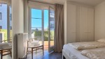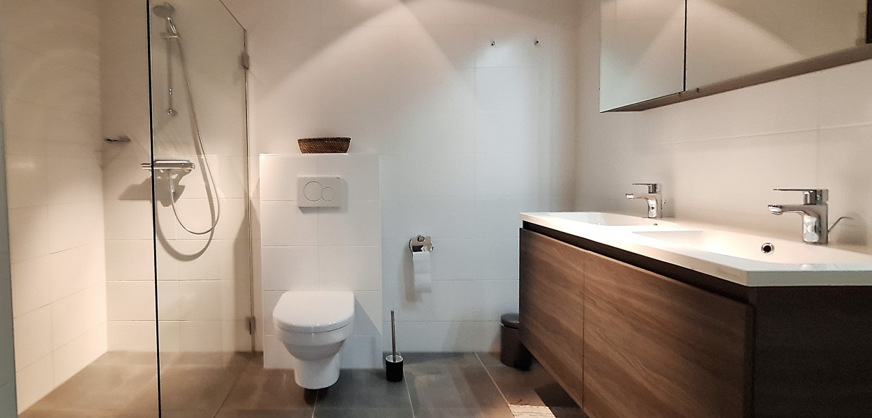 Das elegant eingerichtete Hauptschlafzimmer verfügt über eine luxuriöse Boxspring-Kombination und geräumige Kleiderschränke. Das zweite Schlafzimmer verfügt über ein praktisches Klappbett (140 x 200 cm). Auf Wunsch kann dieses Bett für eine vierte Person aufgestellt werden. Das moderne Badezimmer ist mit einer geräumigen, begehbaren Dusche mit Glaswand, Doppelwaschbecken und Toilette ausgestattet. Außerdem gibt es eine separate Toilette im Flur sowie einen praktischen Abstellraum.