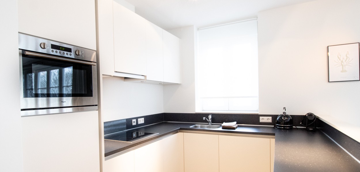 Die moderne und luxuriöse offene Küche hat unter anderem eine Kombi-Mikrowelle, Kühl-Gefrier-Kombi, Nespresso-Maschine, Wasserkocher und eine Spülmaschine. Das helle, geschmackvolle Wohnzimmer mit Ecksofa , die hochwertige offene Küche und die Flügeltüren zum Balkon verleihen diesem großzügig gestalteten Apartment sehr viel Komfort.