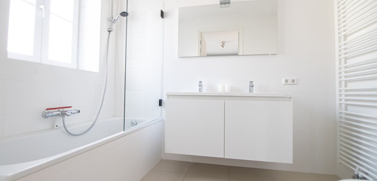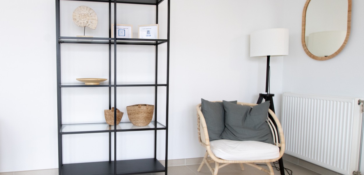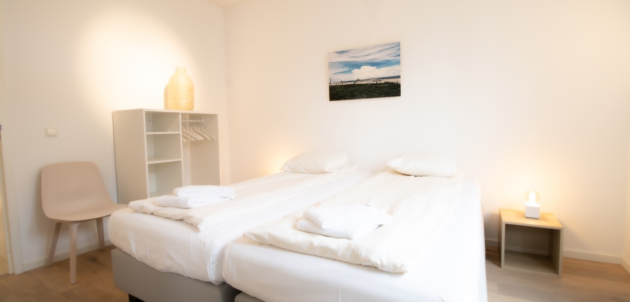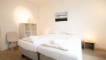 Die beiden Schlafzimmer sind elegant und bequem eingerichtet. Im Elternschlafzimmer schlafen Sie auf einem hochwertigen Boxspringbett, das andere Schlafzimmer hat ein komfortables Doppelbett. Der Masterbedroom verfügt über ein Fernsehgerät. Die beiden Badezimmer, beide mit Tageslicht und mit den Schlafzimmern verbunden, sind unterschiedlich ausgestattet. Eines verfügt über eine Badewanne, zwei Waschbecken und eine Toilette, das andere hat eine praktische Dusche und ein Waschbecken. Eine weitere Toilette befindet sich im Flur, ebenso ein praktischer Abstellraum mit Waschmaschine und Trockner.