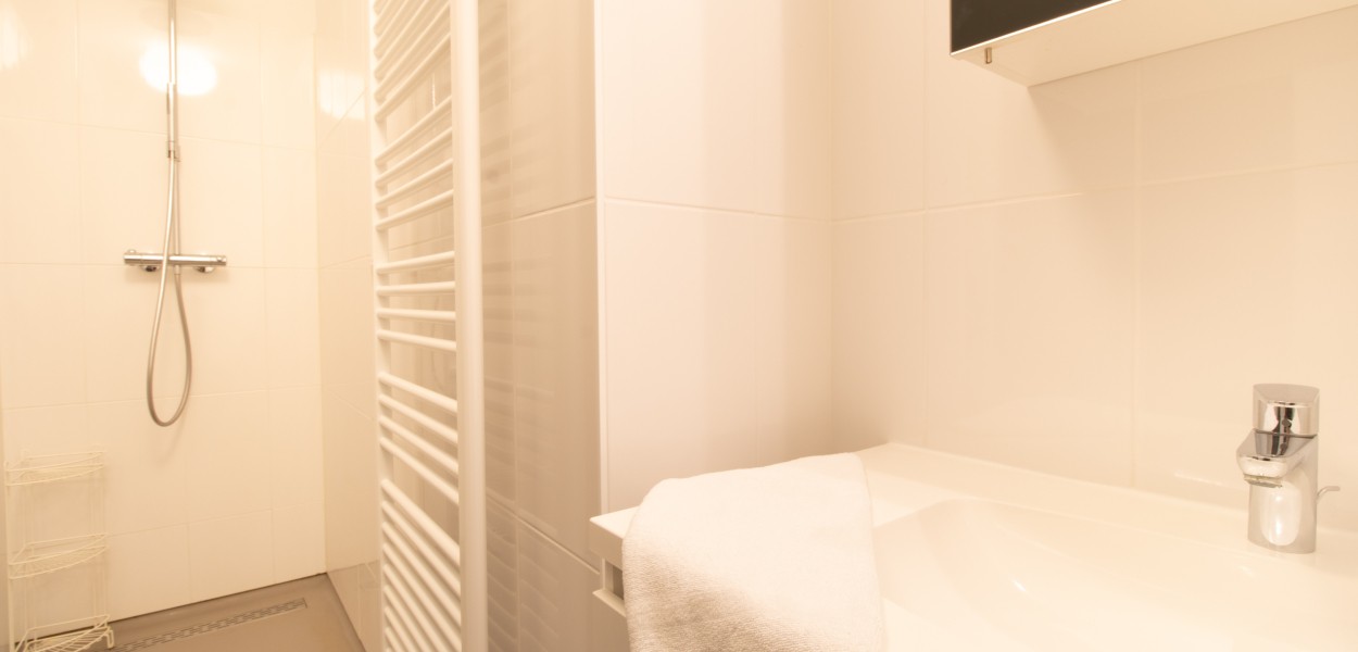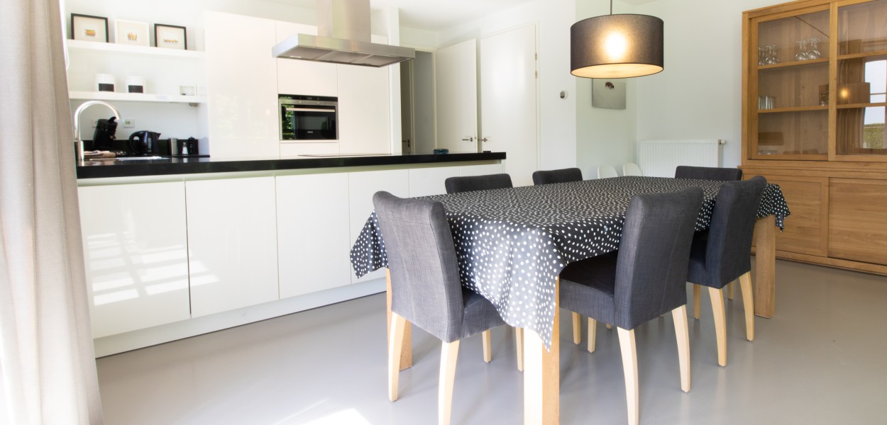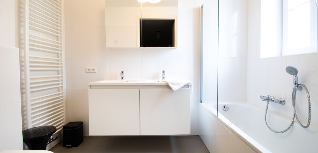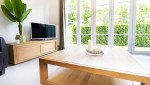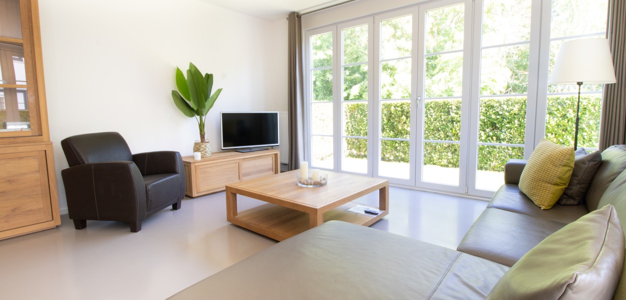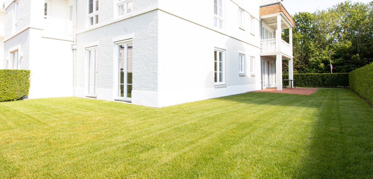 Ein sonniges und stilvolles Apartment von 100 m² im Erdgeschoß. Dieses komfortable Eckapartment hat Glastüren zu einem geräumigen, sonnigen Garten mit Südwestterrasse und eine luxuriös ausgestattete, offene Küche. Da der Boden der Wohnung gegossen wurde, gibt es keine Schwellen. Außerdem hat das Apartment Fliegengitter vor den Fenstern. Bei der Anmietung dieser Wohnung ist es auch möglich, den 2. Parkplatz im Parkhaus zu nutzen auf Anfrage.