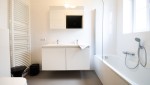 Die beiden Schlafzimmer sind elegant und durchdacht mit hochwertigen Boxspringbetten eingerichtet. Die beiden Badezimmer sind mit den Schlafzimmern verbunden, aber unterschiedlich eingerichtet. Eines ist sehr geräumig und hell und verfügt über eine luxuriöse Badewanne, zwei Waschbecken und ein WC. Das andere ist mit einer begehbaren Dusche und einem Waschbecken ausgestattet. Eine zusätzliche Toilette sowie eine praktische Abstellkammer mit Waschmaschine und Trockner befinden sich im Eingangsbereich der Wohnung.