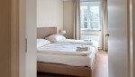 Ein wohnliches Apartment mit 100 m² im zweiten Stock mit drei geräumigen Schlafzimmern und zwei Bädern. Glastüren mit Fliegengittern öffnen sich auf einen Südbalkon mit herrlicher Aussicht auf die Umgebung.
