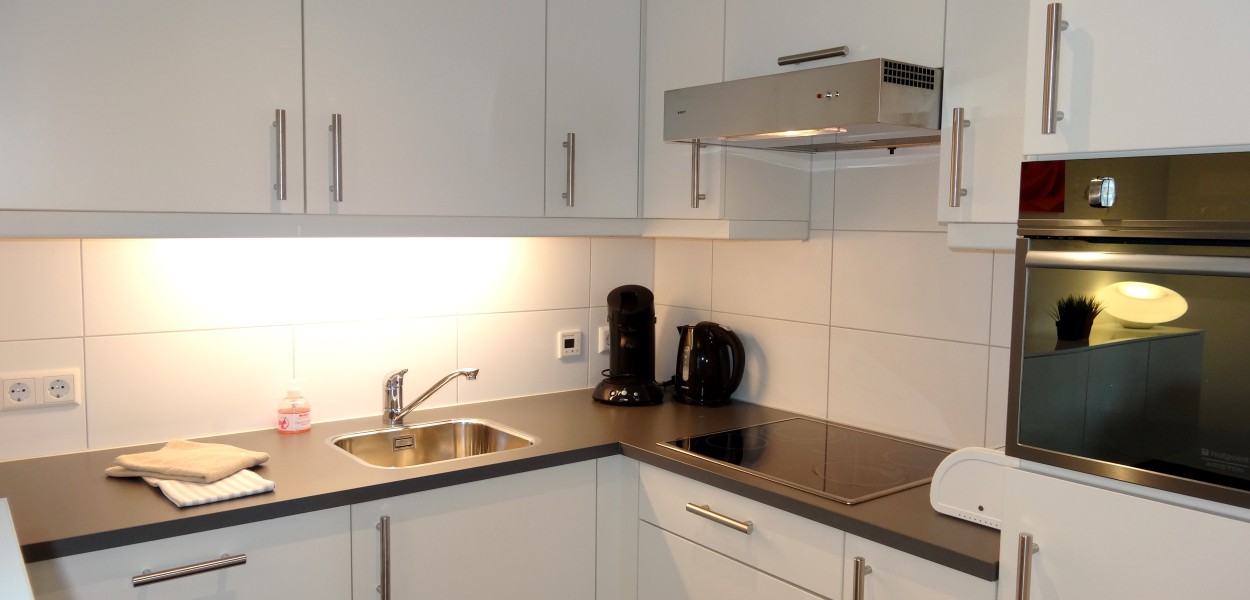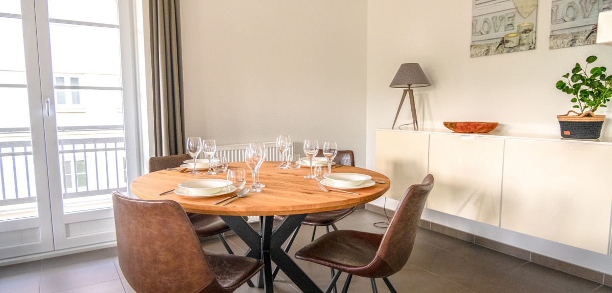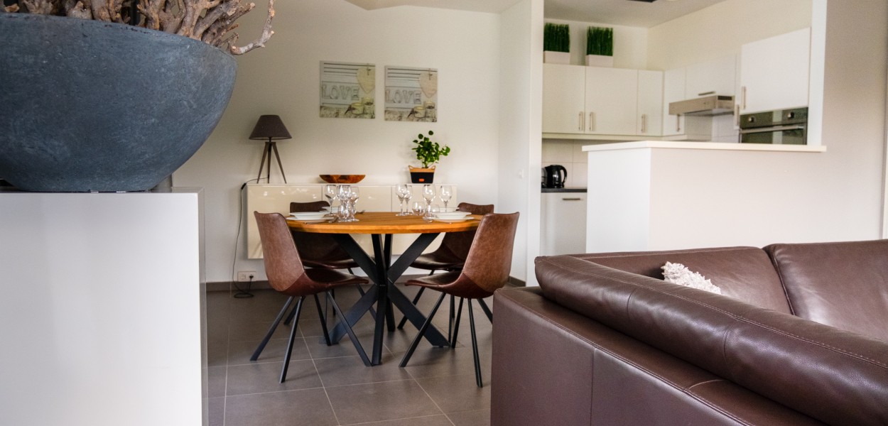 Die voll ausgestattete offene Küche ist mit einer Senseo-Maschine, einer kombinierten Mikrowelle, einem Kühlschrank mit Gefrierfach und einem Geschirrspüler ausgestattet und bildet mit dem Esstisch mit bequemen Ledersesseln ein schönes Ganzes. Die französischen Türen zum Balkon verleihen dem sonnigen Wohnzimmer zusätzlichen Komfort. Alles in allem ist dies eine schöne und komfortable Wohnung, in der Sie einen wunderschönen Urlaub genießen können.