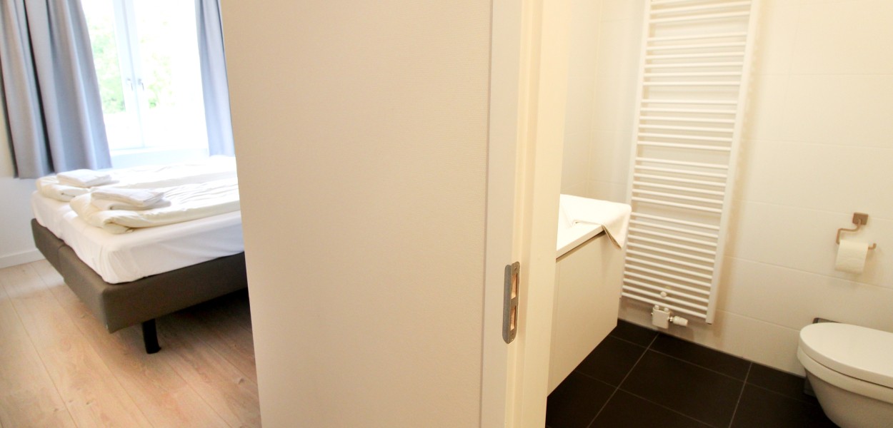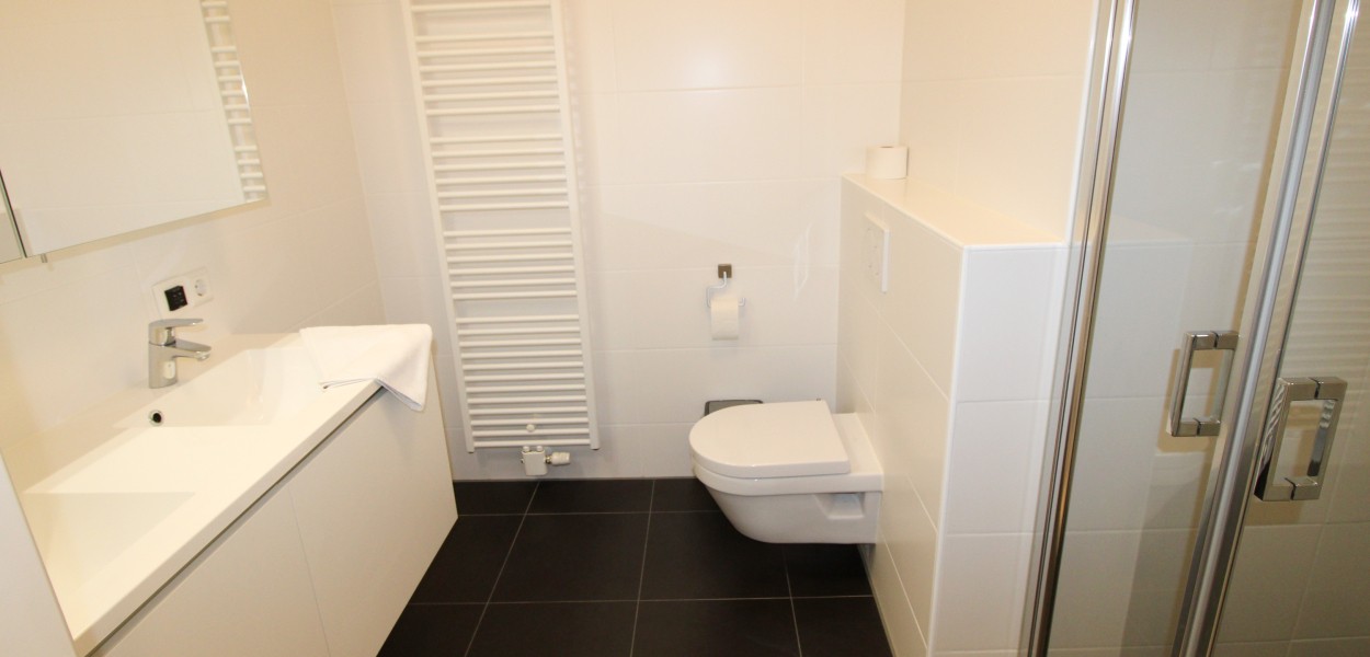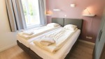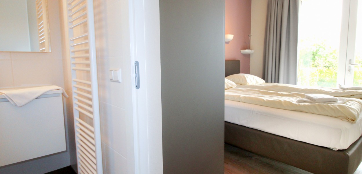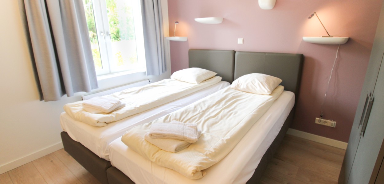 Die Schlafzimmer sind gemütlich und wohnlich eingerichtet. Sie schlafen in luxuriösen Boxspringbetten von 2,10 m Länge und jedes Schlafzimmer schließt direkt an ein Badezimmer an. Das größere Bad hat eine geräumige Dusche, Doppelwaschbecken und WC. Das zweite Bad hat eine begehbare Dusche und ein Waschbecken. Eine zusätzliche Toilette und eine praktische Abstellkammer mit Waschmaschine und Trockner gibt es auf dem Flur.