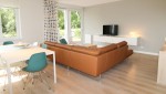 Der Wohnbereich ist besonders geschmackvoll eingerichtet, die Sitzecke verfügt über ein bequemes Ecksofa und ein TV-Gerät mit digitalem Senderpaket. Der Essbereich hat einen Esstisch mit 6 Stühlen und schließt sich an die luxuriöse offene Küche an, die mit allen Annehmlichkeiten ausgestattet ist. Neben einem Induktionsherd steht dort auch eine Kombi-Mikrowelle, ein Kühlschrank mit Eisfach, eine Nespresso-Maschine sowie eine Geschirrspülmaschine zu Ihrer Verfügung.