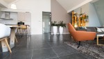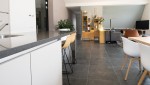 Das Wohnzimmer ist sehr großzügig gestaltet, was durch die hohe Decke noch betont wird. Sie finden dort eine gemütliche Sitzecke mit Digital-TV und mit Neflix, sowie einen Essbereich mit großem Esstisch. Sie können sich mit Ihrem eigenem Neflix-Login anmelden. Ein besonderer Vorteil dieser Wohnung ist der Sonnenschutz, der in die Fenster integriert ist. Die luxuriöse offene Küche ist vollständig maßgefertigt und fügt sich mit der Kücheninsel mit kleiner Bar nahtlos in den Wohnbereich ein. Die Küche verfügt über eine Nespresso-Maschine und eine Filterkaffeemaschine, Induktionsherd, Kombi-Mikrowelle, Kühl-Gefrier-Kombi und einen Geschirrspüler.