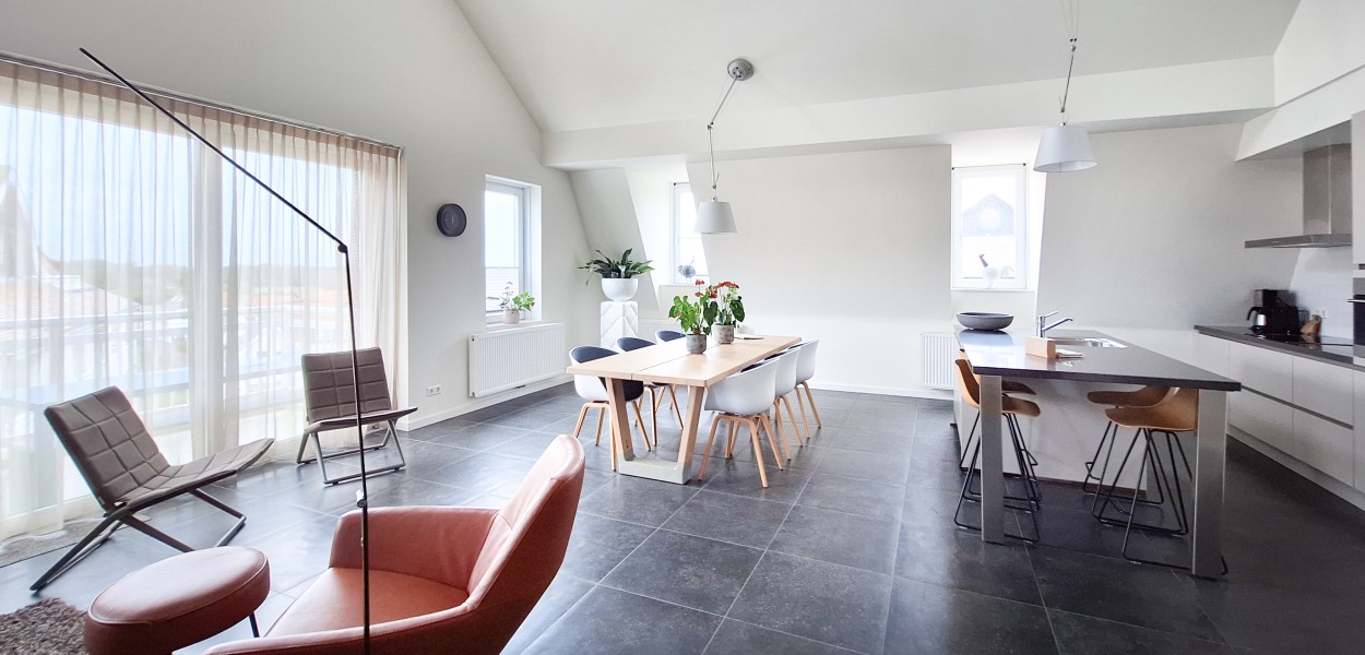 Ein besonders geräumiges und behagliches Penthouse mit gut 150 m² in der dritten Etage mit 3 Schlafzimmern und 2 Bädern. Vom Balkon aus können Sie die Sonne am Morgen und einen Teil des Nachmittags genießen. Zu diesem Apartment gehören zwei Stellplätze in der Tiefgarage. Wenn Sie zwischen Mitte Mai und Mitte September in diesem Apartment wohnen, können Sie außerdem die dazugehörige Strandkabine benutzen, die Sie in wenigen Gehminuten erreichen.