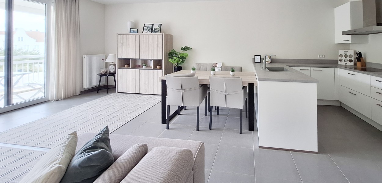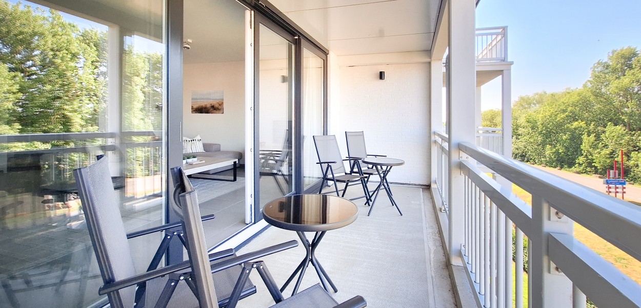 Ein wohnlich und geschmackvoll eingerichtetes Apartment mit 88 m² für 4 Personen auf der zweiten Etage. Dieses Apartment verfügt über zwei Balkone nach Osten und Westen, wo Sie den ganzen Tag Sonne haben und die Aussicht genießen können.
