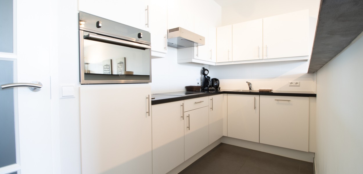 Die offene Küche hat ein Senseo-Maschine, eine Kombi-Mikrowelle, eine Kühl-Gefrier-Kombi und eine Spülmaschine. Der eigenwillige Stil dieser Wohnung sorgt für einen frischen und fröhlichen Look. Wer das Außergewöhnliche sucht, ist hier genau richtig!