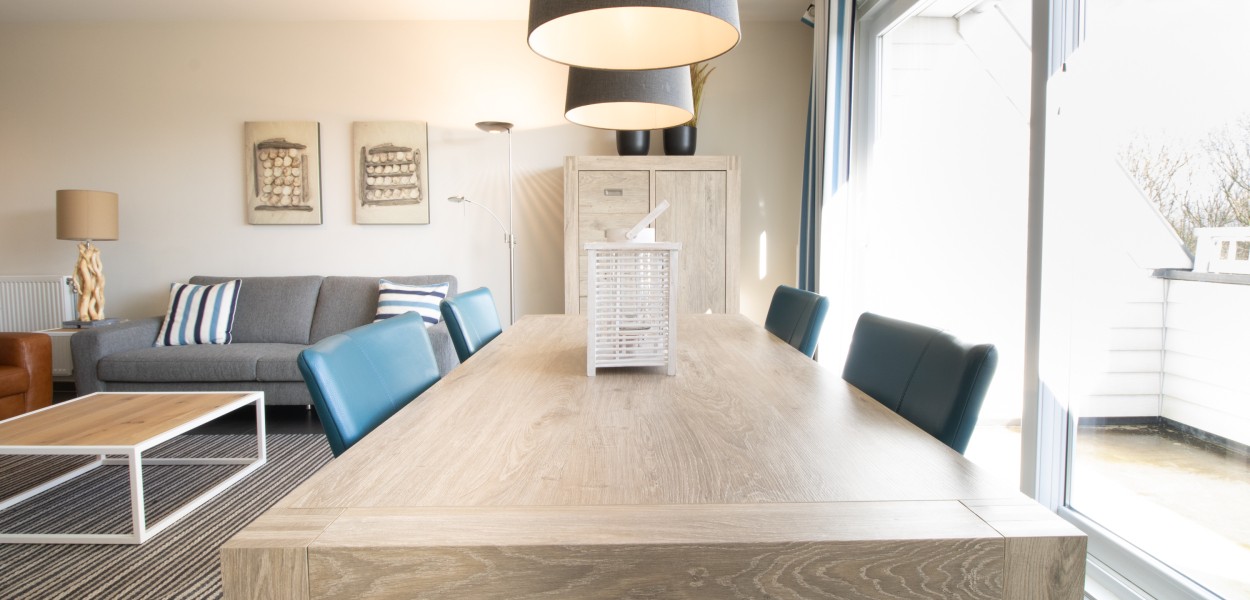 Das 80 m² große Penthouse im dritten Stock ist geräumig und einzigartig in seiner Ausstattung. Eine Glasschiebetür führt auf einen großen, nach Süden gelegenen Innenbalkon. Die luxuriöse Doppelschlafcouch bietet zusätzliche Möglichkeiten.