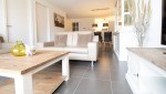 Das Elternschlafzimmer ist elegant und aufwändig eingerichtet, Sie schlafen auf einem hochwertigen Boxspringbett. Ein zweites Schlafzimmer ist vorhanden. Das komfortable Badezimmer ist mit einer Dusche und einem Waschbecken ausgestattet. Im Flur befindet sich eine separate Toilette, ebenso gibt es dort eine praktische Abstellkammer mit Waschmaschine und Trockner.