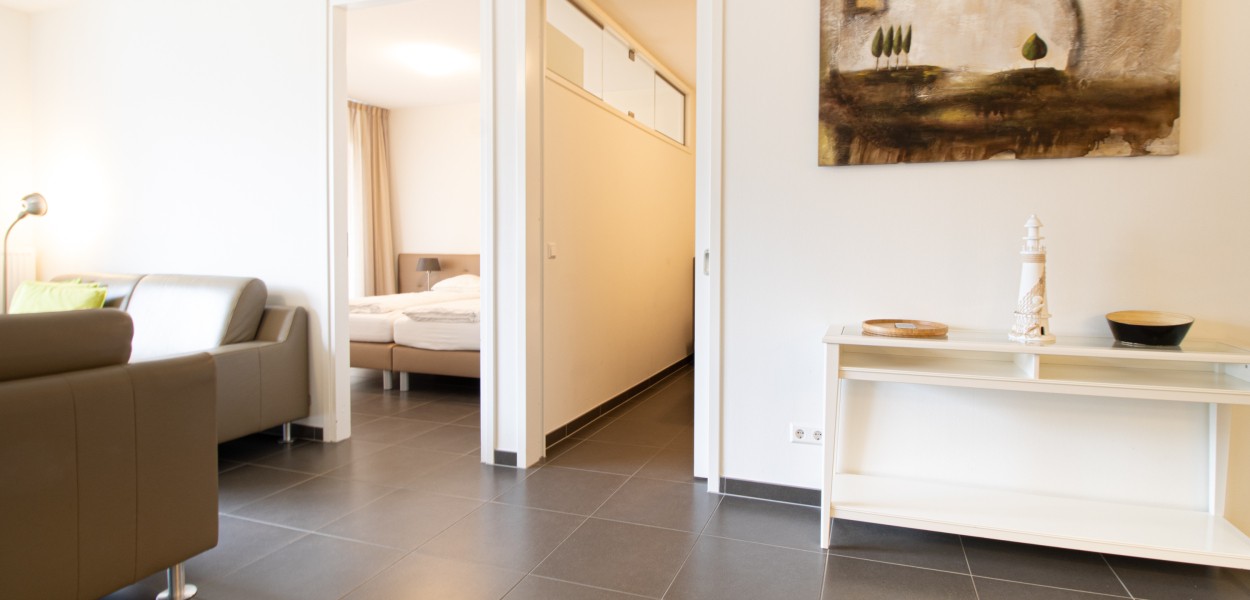 Dieses komfortable 78-Quadratmeter-Apartment ist auf der zweiten Etage und hat einen sehr geräumigen Südbalkon. Vom Wohn- und vom Schlafzimmer treten Sie direkt in die frische Seeluft hinaus.