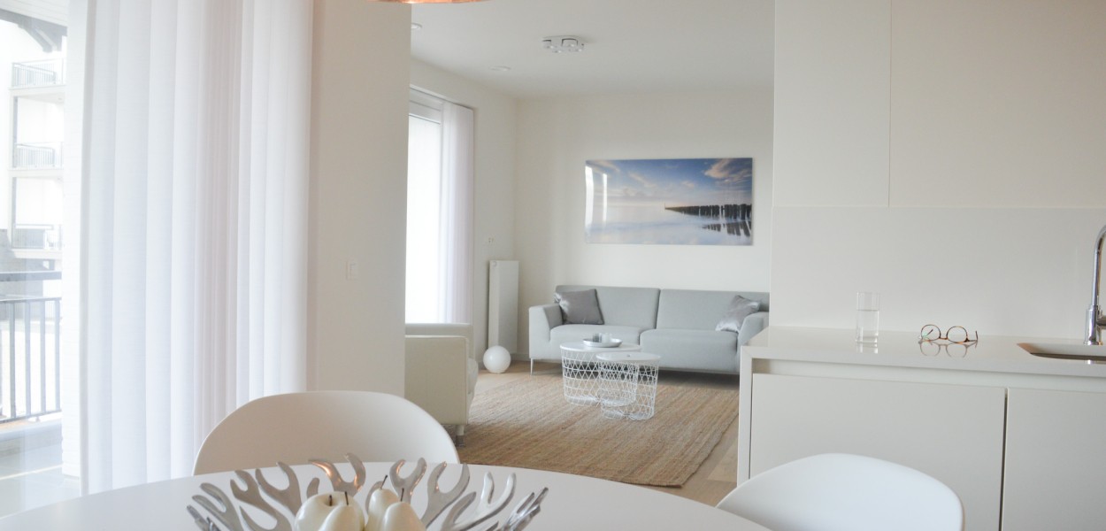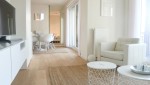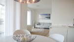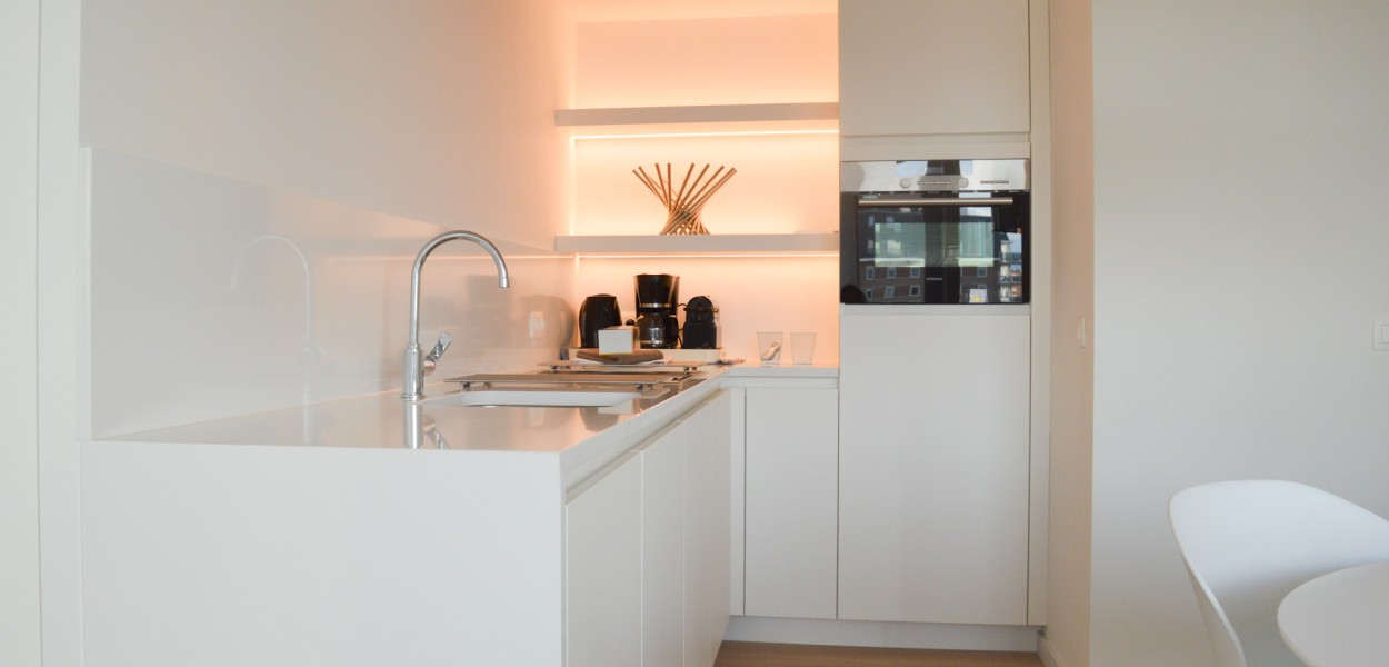 Sie betreten die Wohnung durch den Flur, von wo aus Sie den Wohnbereich betreten. Dank die große Fenstern haben Sie sofort einen Blick auf den breiten Balkon und der Boulevard. Gleich auf der rechten Seite befindet sich ein gemütlicher Esstisch mit daneben die Küche. Es ist mit einer Nespresso-Maschine, einem Induktionskochfeld, einer Kombi-Mikrowelle, einem Kühlschrank mit Gefrierfach und einem Geschirrspüler ausgestattet. Hinter der Küche befindet sich eine gemütliche Sitzecke mit Fernseher mit zusätzlichen ausländischen Kanälen, wo sich auch eine Schiebetür befindet, die den Zugang zum Balkon ermöglicht.