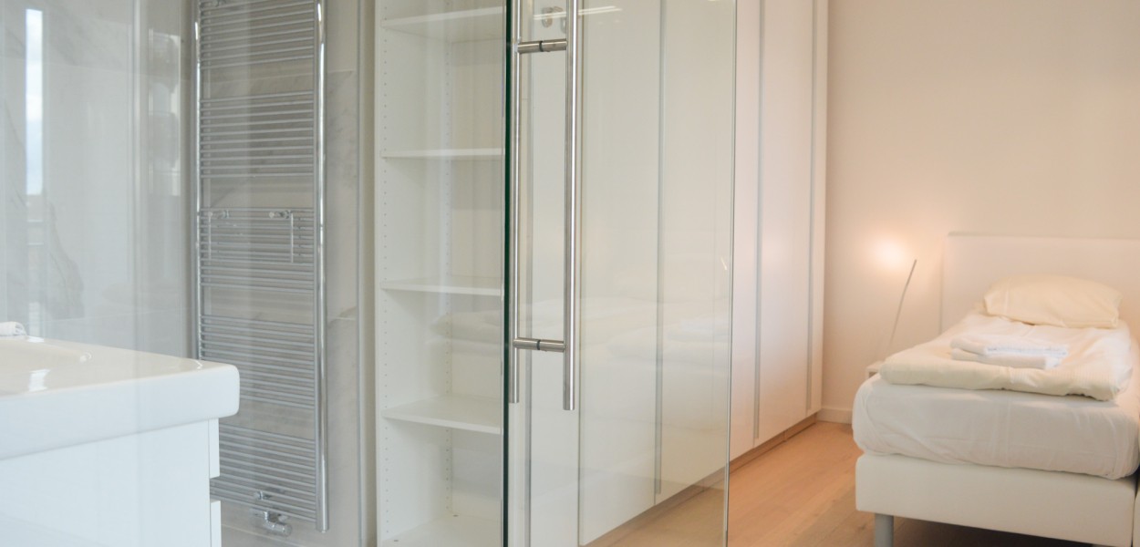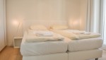 Das Schlafzimmer ist mit hochwertigen Boxspringbetten ausgestattet und hier können Sie durch die Gartentüren zum Balkon gehen. Das Badezimmer verfügt über eine geräumige ebenerdige Dusche und ein Waschbecken. Eine separate Toilette befindet sich im Flur, genau wie ein praktischer Abstellraum, in dem Ihnen eine Waschmaschine zur Verfügung steht.