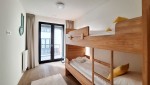 Das Hauptschlafzimmer ist mit einer Boxspring-Kombination von 2,10 m Länge ausgestattet und verfügt über ein eigenes Badezimmer mit Badewanne und separater Regendusche, zwei Waschbecken und WC. Auch im zweiten Schlafzimmer befindet sich eine Boxspring-Kombination mit extra langen Betten. Das dritte Schlafzimmer verfügt über ein stabiles Etagenbett, das auch für Erwachsene mehr als genug Schlafkomfort bietet. Gegenüber den Schlafzimmern befindet sich ein zweites Badezimmer mit einer angenehmen Regendusche, einem Waschbecken und einer Toilette. Im Flur befindet sich ein separates Gäste-WC sowie ein praktischer Abstellraum mit ua einer Waschmaschine.